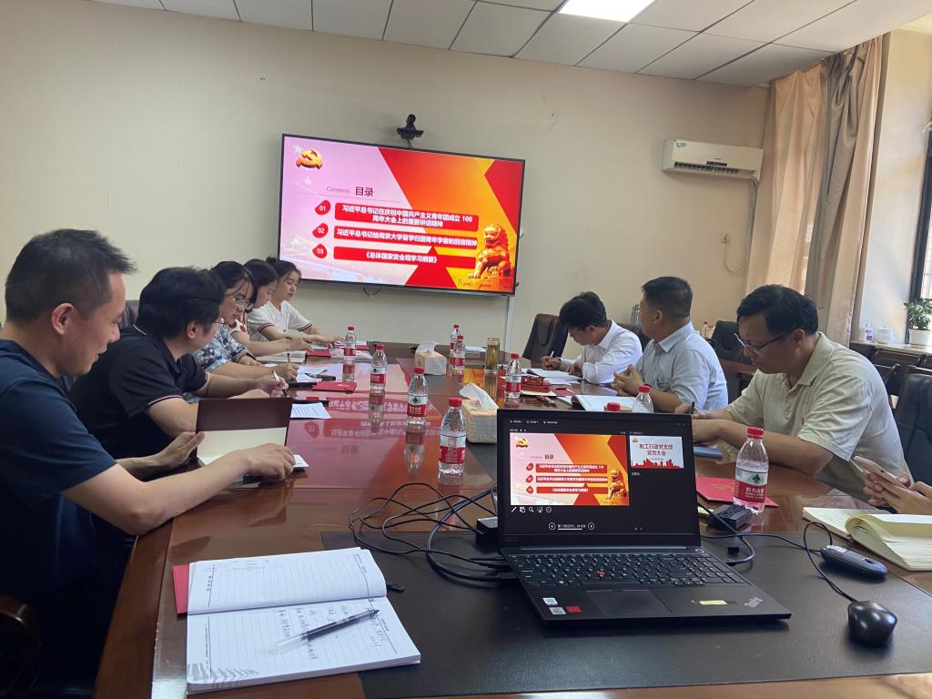 会议第三阶段进行了政治理论学习。支部党员张凡、杨晓林和丁琳分别领学了习近平总书记在庆祝中国共产主义青年团成100周年大会上的重要讲话精神、习近平总书记给南京大学留学归国青年学者的回信精神和《总体国家安全观学习纲要》主要精神,三名同志结合本职工作分享了学习心得和体会。