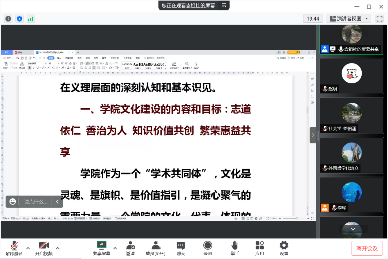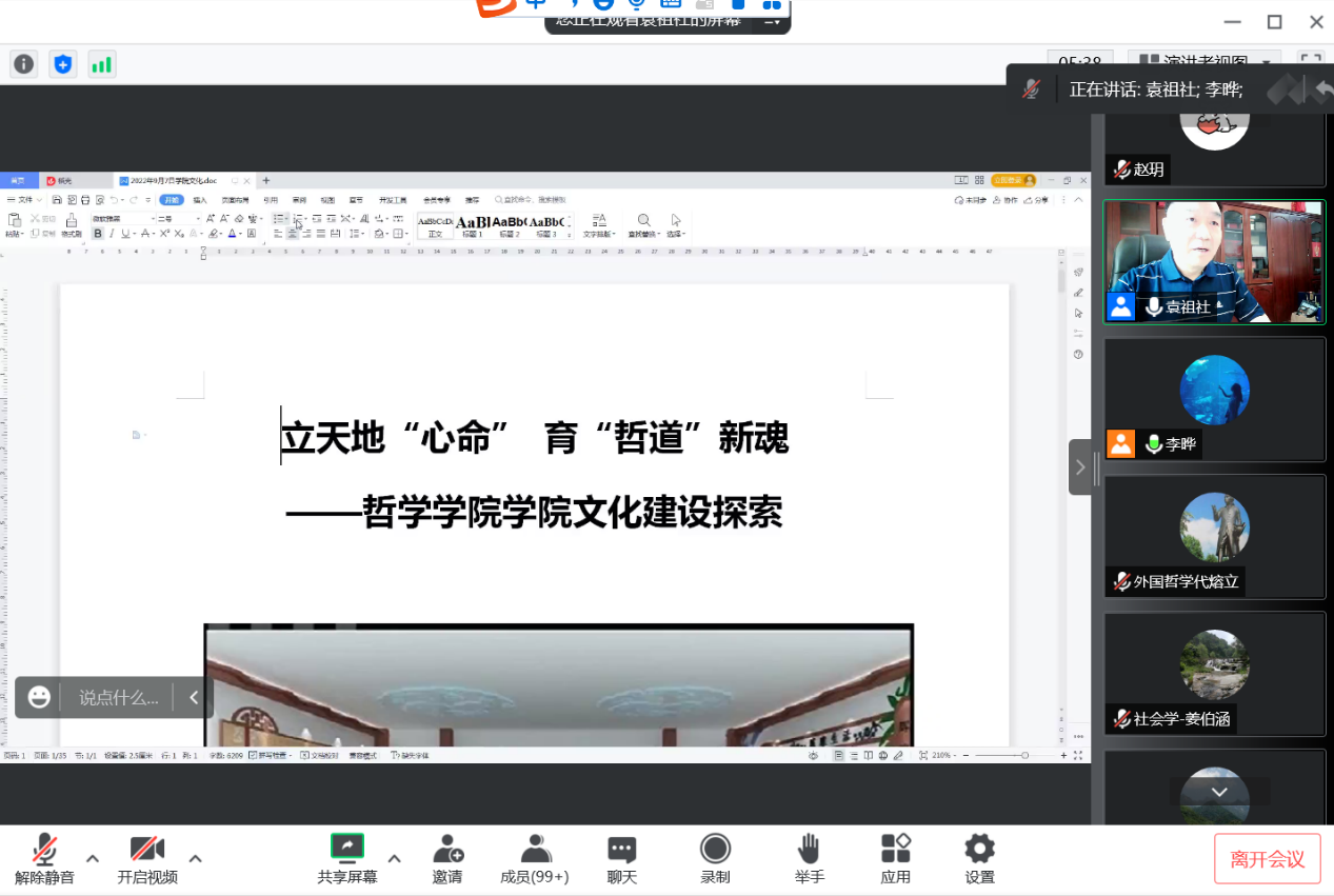 按照学院2022年度新生入学教育工作安排,2022年9月7日下午,jcjc5500公海贵宾会在线上举行2022级新生开学第一课,哲学社会科学高等研究院院长、原jcjc5500公海贵宾会院长袁祖社教授以“立天地‘心命’ 育‘哲道’新魂”主题,为全体2022级新生做了新生入学教育报告。学院2022级本科生、2022级研究生辅导员张凡,兼职辅导员朱盼盼、张良娜,2022级全体本科生、硕士、博士研究生新生参加了会议。会议由jcjc5500公海贵宾会党委副书记李晔主持。