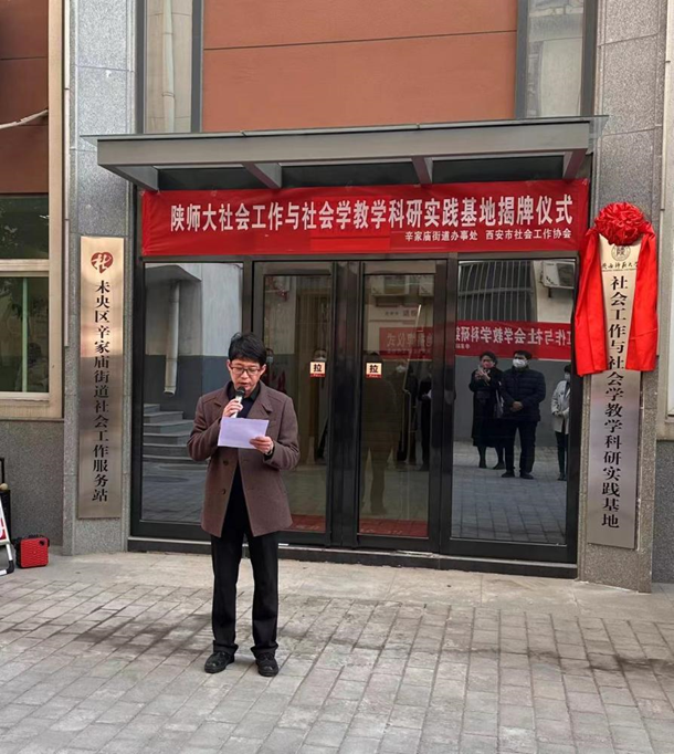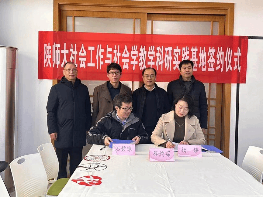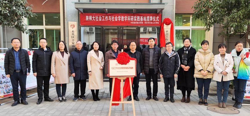 2023年1月7日上午,“公海贵宾会官网jcjc5500社会工作与社会学教学科研实践基地”签约揭牌仪式在辛家庙街道社工站顺利举行。西安市民政局儿童福利与社会工作处副处长李小马,未央区民政局副局长唐丽雯,未央区辛家庙街道办事处党工委书记张峰、主任杨静、副主任詹小波,西安市社会工作协会执行会长狄倩、秘书长张文欣及辛家庙社工站相关同志,jcjc5500公海贵宾会党委书记刘冬,副院长石碧球,副院长田雄,社会学系民俗学学科点负责人王胜利,社会学系副主任张方旭,参加了此次签约揭牌仪式。