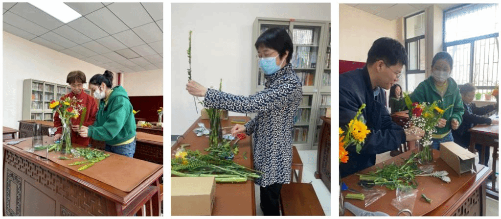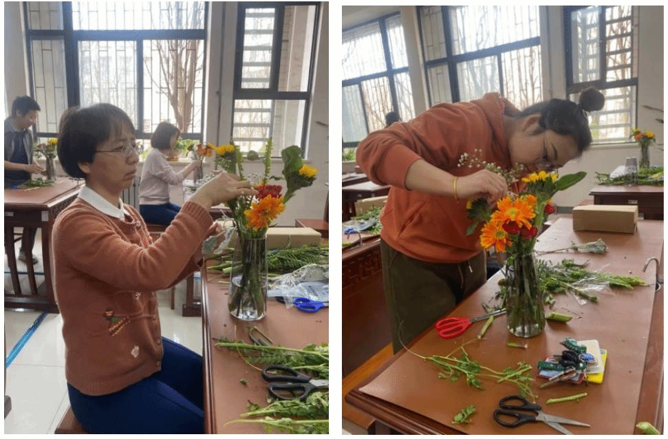 此次插花活动结束后,大家纷纷表示既收获了插花这门优雅的技艺,也放松了心情。在花艺中感受美、欣赏美,展现了我院女教师的美丽优雅和男教师的浪漫细腻。