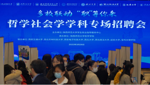 为进一步做好陕西省高校 2023 届毕业生就业工作,提升哲学社会学学科大学生就业服务的针对性和有效性,推动相关学科人才与用人单位有效对接,由公海贵宾会官网jcjc5500学生就业指导服务中心主办,jcjc5500公海贵宾会承办,西安交通大学、西北农林科技大学、西安电子科技大学、西北大学、西北政法大学、延安大学、宝鸡文理学院等高校共同参与的“陕西省高校哲学社会学学科专场招聘会”于3月26日(星期日)在公海贵宾会官网jcjc5500长安校区新勇活动中心成功举办。