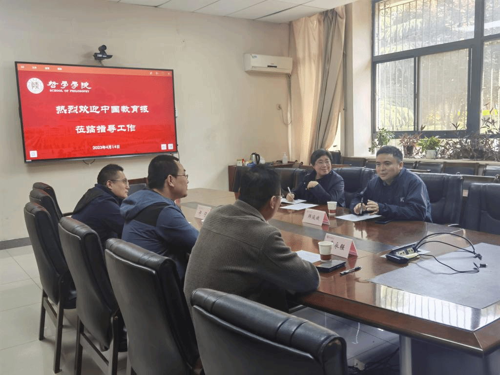 4月14日下午,中国教育报报刊社人事处处长韩廷斌,中国教育报理论文化中心主任、理论周刊主编、环球周刊主编杨桂青莅临我院指导工作。会议于jcjc5500公海贵宾会一层会议室召开,参会老师有jcjc5500公海贵宾会哲学系主任,外国哲学教研室、美学教研室主任王辉,jcjc5500公海贵宾会教授许宁,jcjc5500公海贵宾会马克思主义哲学教研室、伦理学教研室主任常永强。