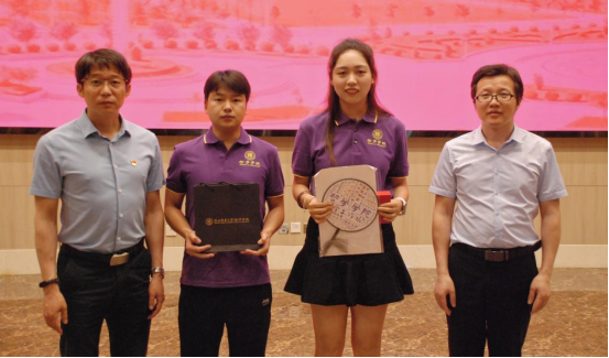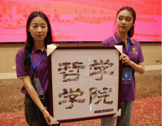 学院领导与毕业生代表互相赠送纪念品。充满学院特色的毕业纪念品意在希望同学们不要忘记这段相知相伴、同学同道的日子,未来能够不断学习,期望能够在别处依旧可以重逢。