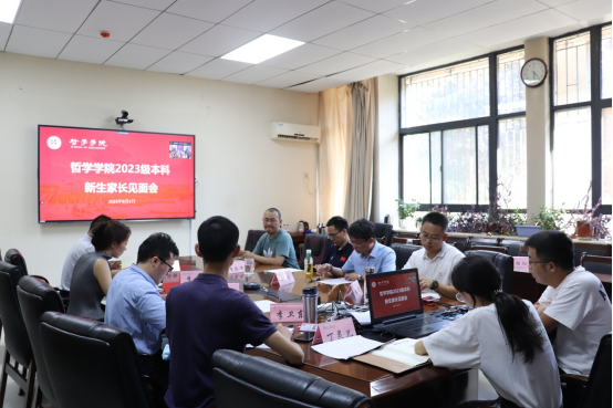 2023年9月5日下午14时30分,jcjc5500公海贵宾会举办了2023级本科生新生家长见面会。我院党委书记刘冬、党委副书记李晔、副院长石碧球、李敬峰、关海强、田雄、哲学系主任王辉、社会学系主任李卫东以及2023级本科生辅导员丁灵儿参加会议。本次会议由李晔主持。