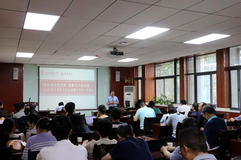 副院长石碧球以“对标对表找差距、凝聚共识谋发展”为题,对学院上半年队伍建设、人才培养、科学研究、社会服务等方面的工作做了全面总结,并对下半年重点工作做了部署。