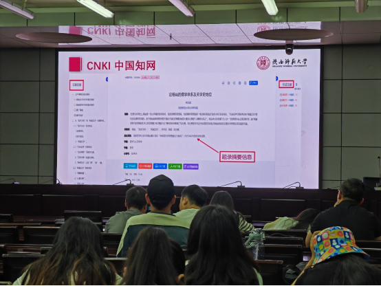 为使丰富的图书资源为学生所用,王号辉老师紧接着为大家演示了如何使用以国家图书馆分类法为依据的图书检索系统。电子资源作为纸质图书的良好补充,同样是师图馆藏资源的重要组成部分,充分利用丰富多样的馆藏数字资源也十分重要。为助力广大师生的学习与研究,我校购买了爱如生中国基本古籍库、皮书数据库、超星数字图书馆等百余种数据库。王号辉老师按照电子图书数据库、电子期刊数据库、学术论文数据库及统一检索平台的不同类型划分电子资源,进而选取十余种常用平台和数据库为代表,为大家展示检索、筛选、引用和下载文献资源的操作指南,并纠正了各平台上常见的操作误区。