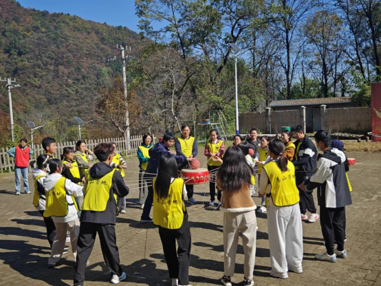同学们在训练基地开始进行鼓球趣味游戏。两队都在比赛中发挥出色,学习到了合理设置目标与团队协作的重要性。