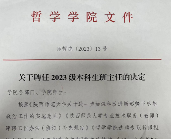 学习育人,培育学生优良学风。班主任们依托“哲院英才成长支持计划”“学风建设月”等活动载体,带领学生开展了丰富多彩的学业指导和学习帮扶活动。王洒洒、陈玉佩、王胜利带领社会学班开展跨年级读书会活动,介绍学课经典著作,依托现实案例对概念和理论进行阐述,拓宽学生视野、增强学生专业认同;组织开展就业、出国交流分享会,邀请往届优秀毕业生开展经验分享,帮助学生合理规划生涯目标,碰撞思维火花。王辉、常永强、刘佳宝、张波波带领哲学班学生走进哲学经典,沐浴智慧书香;在精准摸底学生考研报考院校及专业的基础上,组织开展专业老师答疑活动,为学生提供备考技巧、专业复习方面的重要指导。过去一年,在学院党委的领导和班主任的帮助下,学院2023届本科毕业生就业率、升学率实现近几年新高,其中升学率位列全校第一,学风建设成效显著。