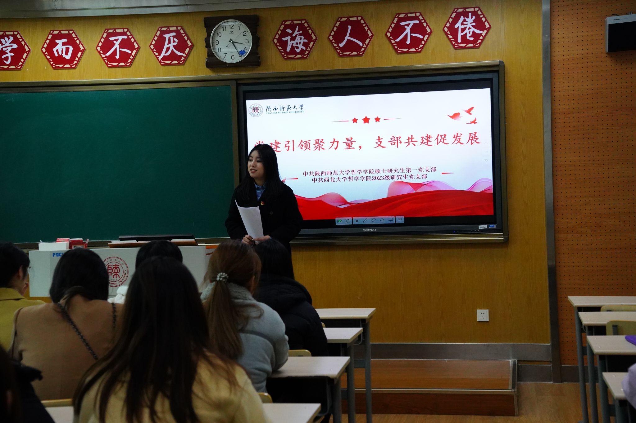 为深入学习宣传贯彻党的二十大精神,推进学习贯彻习近平新时代中国特色社会主义思想主题教育走深落实,2023年11月12日,学院硕士研究生第一党支部与西北大学jcjc5500公海贵宾会2023级研究生党支部开展了“党建引领聚力量,支部共建促发展”主题党日活动。