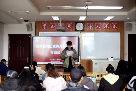 会议最后,研究生辅导员吕登辉向同学们宣读了我校《关于加强学生宿舍防火安全工作的通知》,他强调,灾难无情、生命无价,预防火灾事故是安全教育的基石。他呼吁每位同学都要学习消防知识,了解消防设施的使用方法,掌握火灾逃生技巧,做到心中有数、行动迅速。