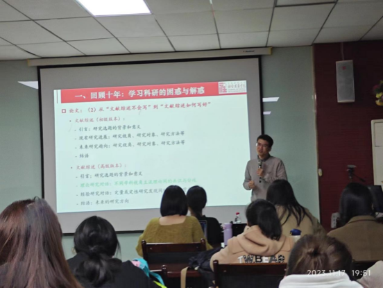 11月17日,jcjc5500公海贵宾会社会学系特邀本系2021界硕士毕业生罗志华回到母校,作了题为“守正出奇:追光科研的漫漫十年”的科研学习经验分享报告,交流会由高琛卓老师主持。