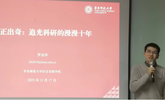 罗志华同学目前在华东师范大学社会发展学院攻读博士学位。本次,希望为社会学系在读学生树立身边的榜样,激发其专业学习兴趣,培养其良好的科研学习习惯。