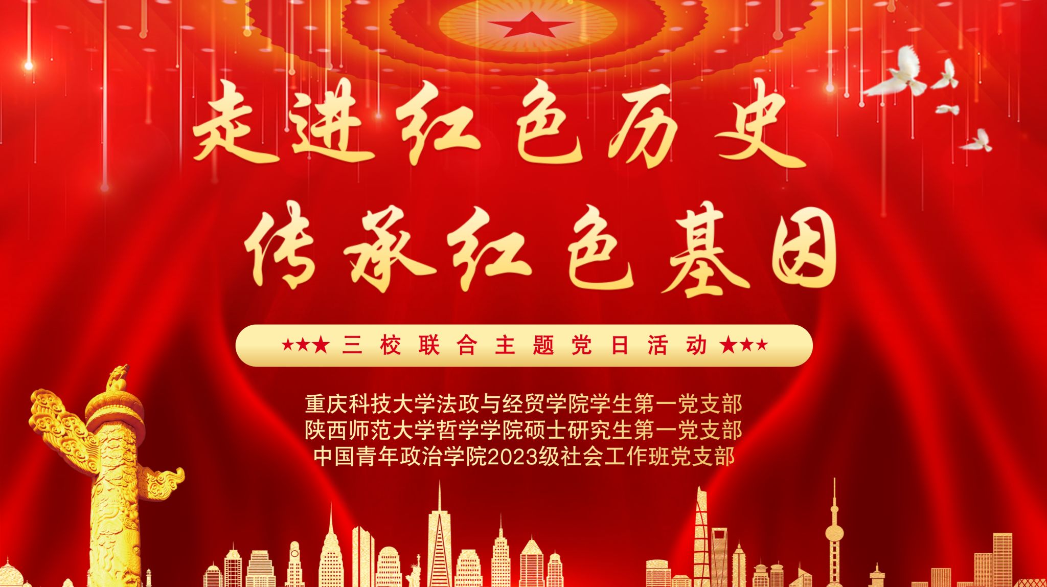 鉴故而知今,彰往而察来。为深入贯彻习近平总书记关于“用好红色资源,传承好红色基因,把红色江山世世代代传下去”的重要指示精神,2月29日,jcjc5500公海贵宾会硕士研究生第一党支部与重庆科技大学法政与经贸学院学生第一党支部、中国青年政治学院2023级社会工作班党支部联合开展了“走进红色历史,传承红色基因”主题党日活动,我院研究生辅导员张凡老师、重庆科技大学法政与经贸学院办公室主任秦煜粟老师、中央团校青少年思想政治教育部谢雨莹老师与三支部全体党员、入党积极分子共同参与本次主题党日活动。