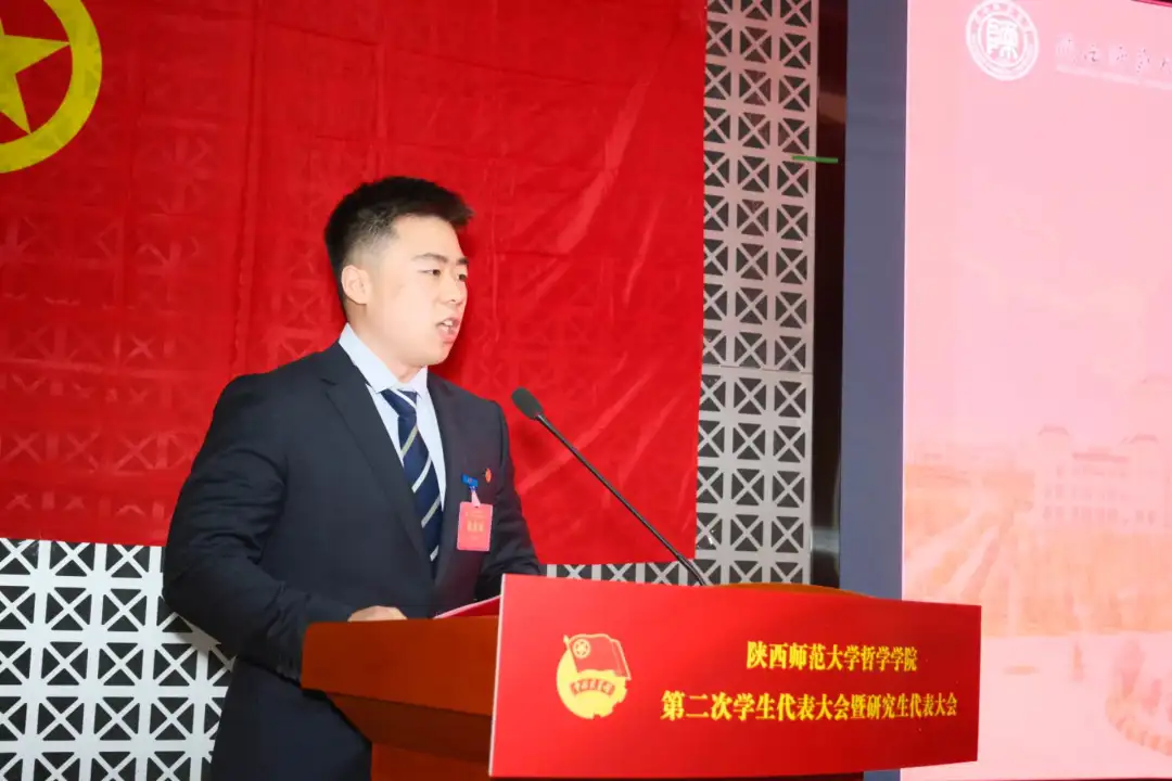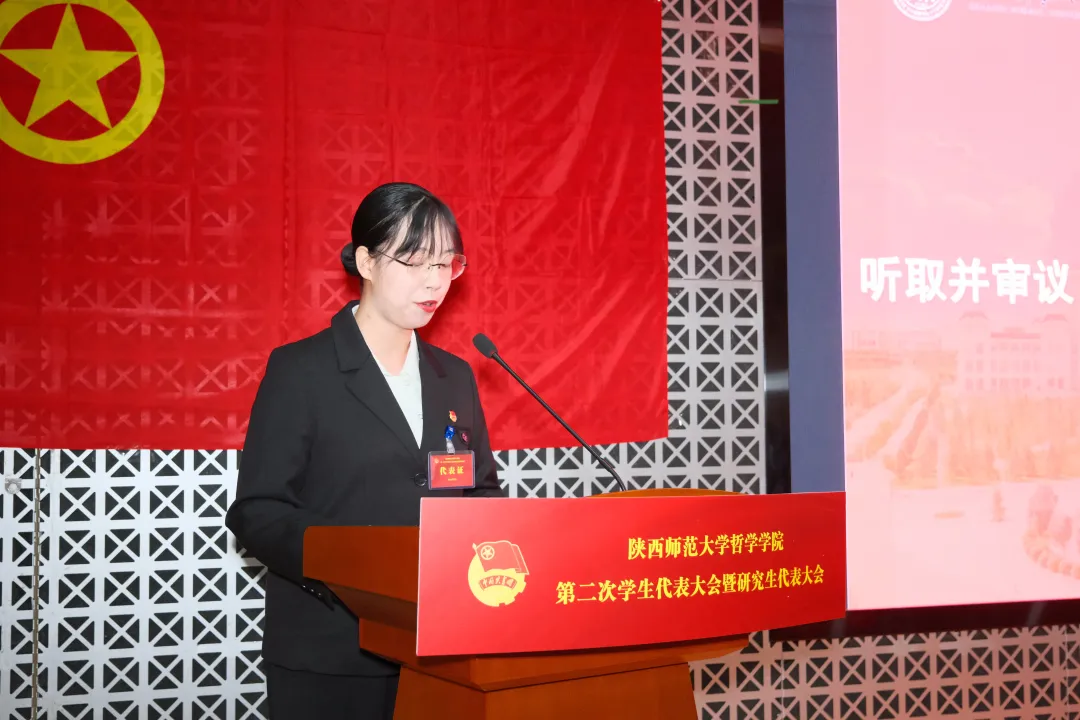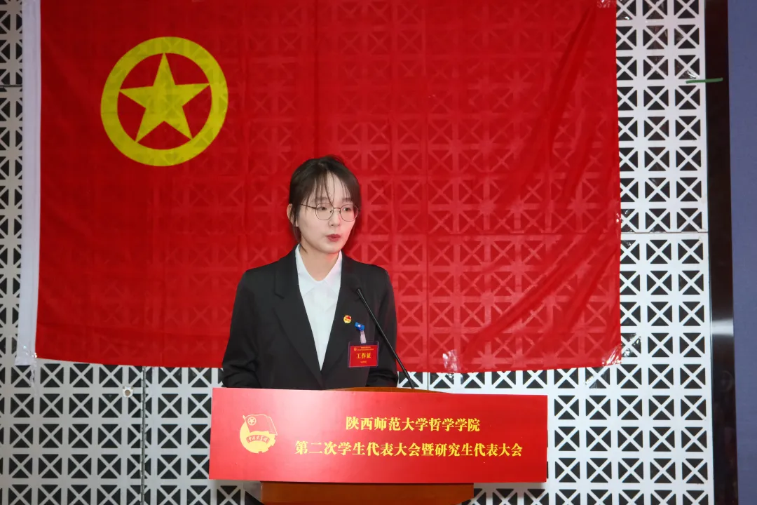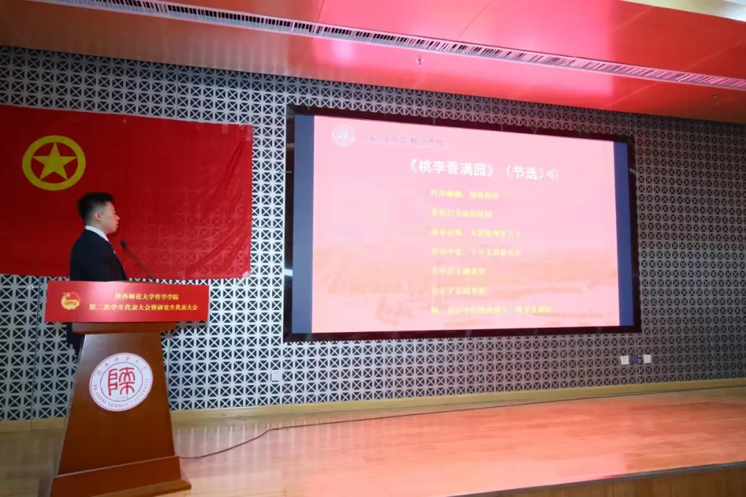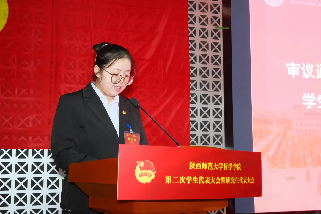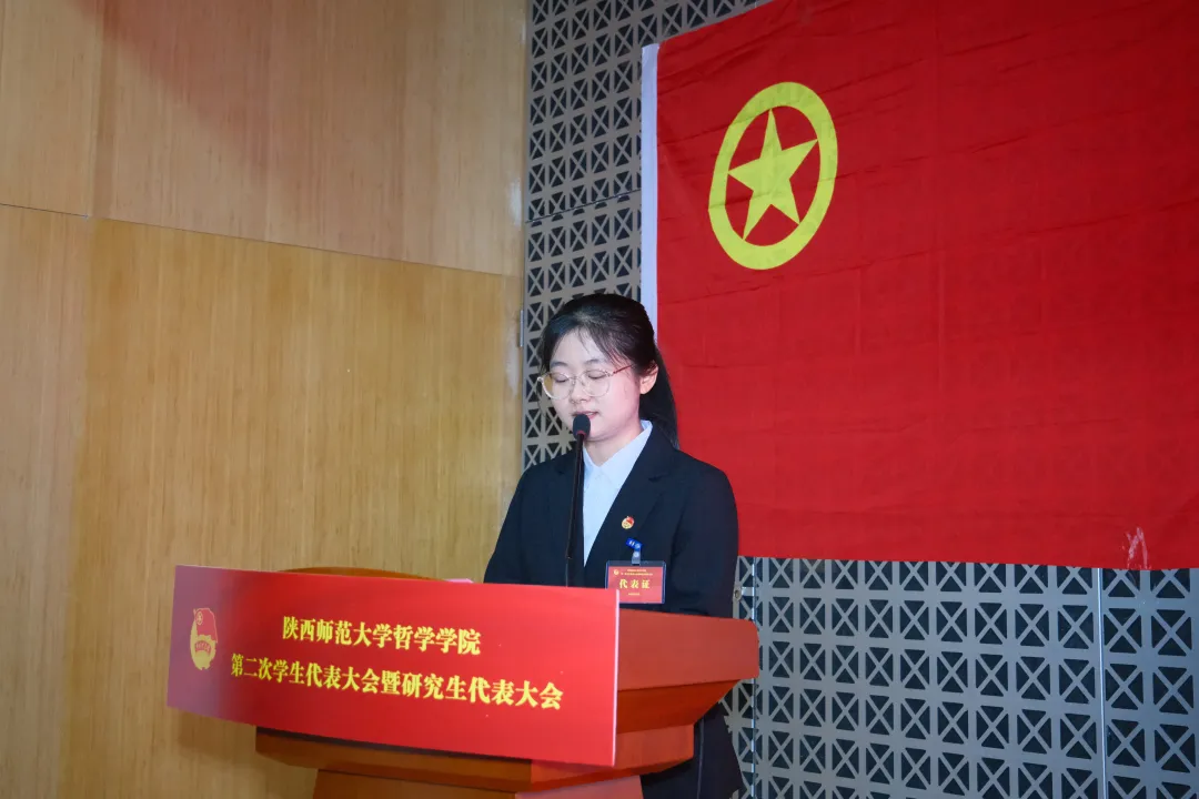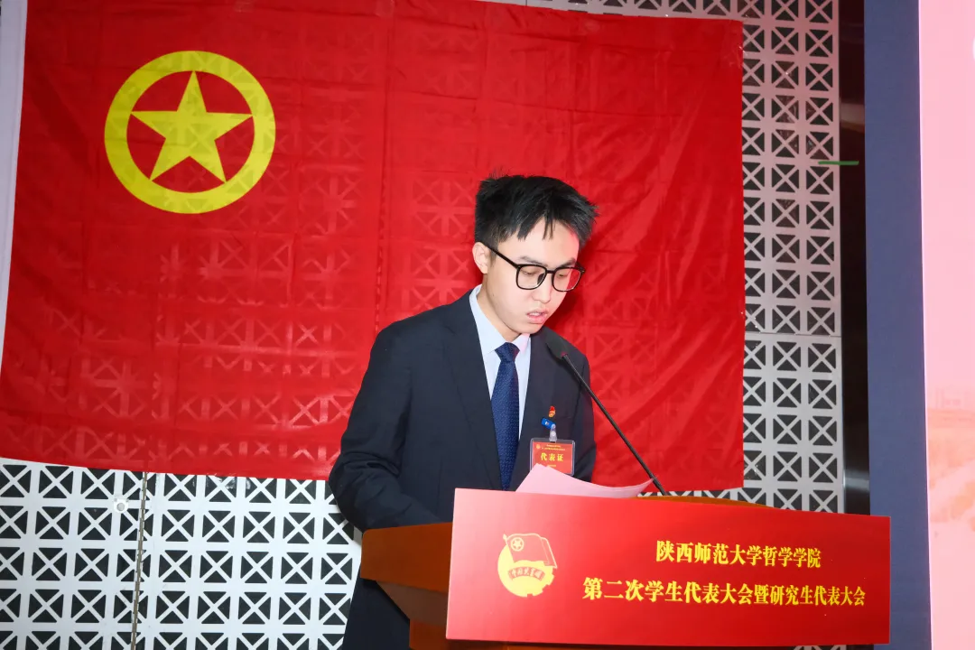上午10时,召开正式会议,会议由大会主席团成员孙宝文主持。会议第一阶段,分别由学院第一届学生会执行主席王子函,第一届学生会主席团成员晋婧阳、本科生辅导员丁灵儿作大会《筹备工作报告》《代表资格审查报告》《提案工作报告》并经全体代表审议通过。随后,学院第一届学生会执行主席王子函、第一届研究生会主席团成员冯瑞迪分别做学院《第一届学生会工作报告》《第一届研究生会工作报告》并经全体代表审议通过,学院团委副书记李牧晗对大会选举办法及总监票人、监票人、总计票人、计票人名单进行汇报并经全体代表审议通过。