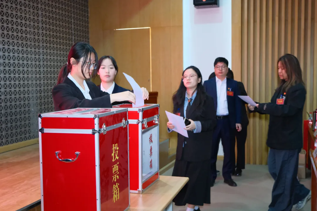 会议第二阶段,全体学生代表选举产生了学院第二届学生委员会5人、研究生委员会委员4人。计票结束后,由学院党委副书记、纪委书记李晔宣读委员名单。