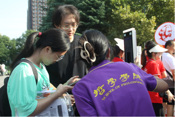 9月1日,迎着晨曦,学院老师和全体志愿者们早已等候在迎新现场,认真检查各项迎新工作的内容与流程,确保在迎新工作的每个环节都能以最高的效率和最大的热情为新同学们做好服务。天气晴朗,举目无云,更加衬得大家心情雀跃,期待着新同学的到来。