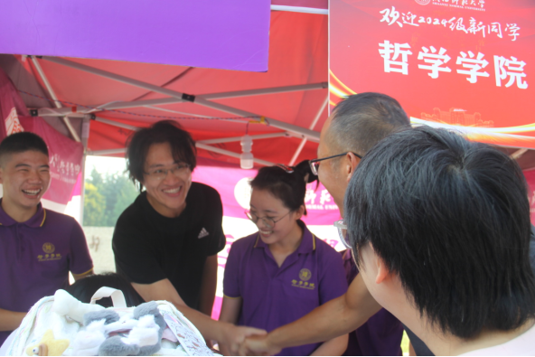 学院党委书记刘冬、副院长石碧球、党委副书记李晔、副院长关海强也前往迎新工作一线,热情迎接新生与家长们的到来。老师们向前来慰问的学校领导介绍了2024级本科新生的基本情况,与新生家长畅快交流,其乐融融。