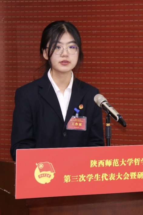 大会开始,全体参会师生齐唱《中华人民共和国国歌》。随后,学院第二届学生会主席团成员王心语、李梦婷,本科生专职辅导员吴承恒,第二届学生会执行主席史霁旸,第二届研究生会执行主席孙宝文依次作大会《筹备工作报告》《代表资格审查报告》《提案工作报告》《第二届学生会工作报告》《第二届研究生会工作报告 》,研究生专职辅导员张凡汇报了《大会选举办法》及总监票人、监票人、总计票人、计票人名单,经全体代表审议通过。