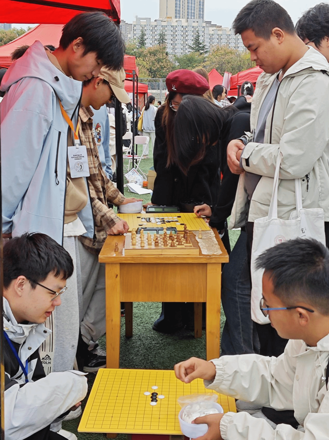三寸棋子手中拿,一方世界心所掌。恰逢师大八十华诞,10月26日上午,在我院团委指导下,弈林棋友社在长安校区田径场参加了由校团委举办学校2024年学生社团博览会暨社团纳新活动并取得了圆满成功。