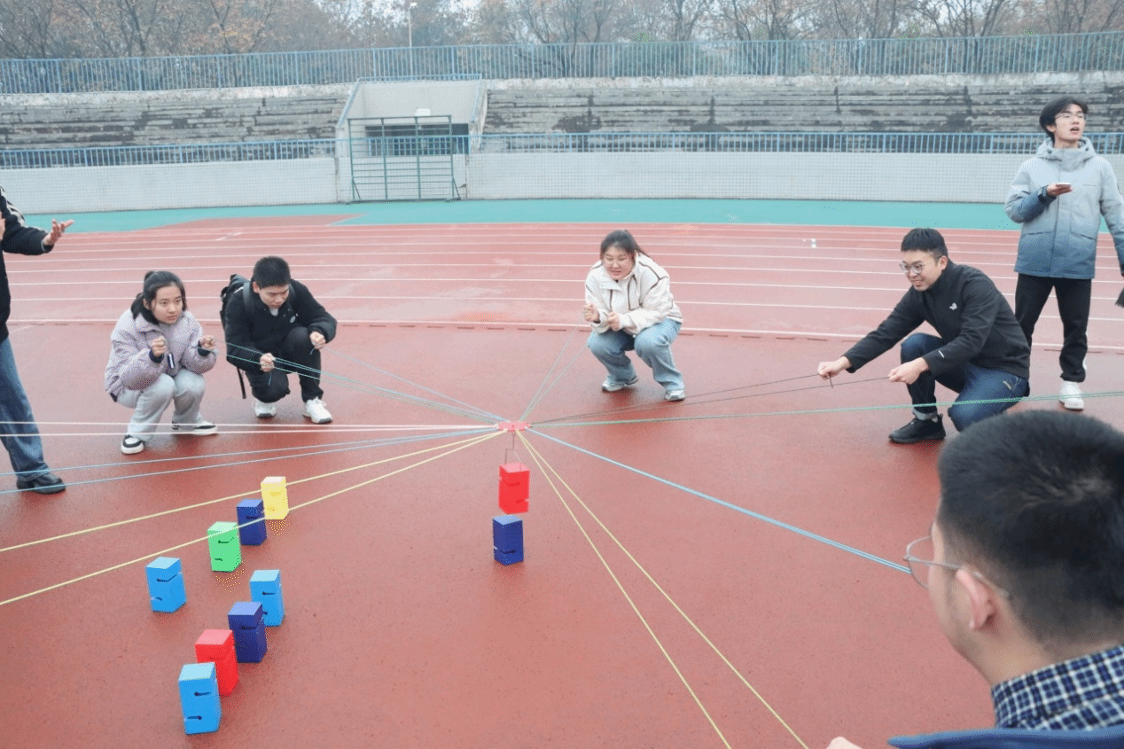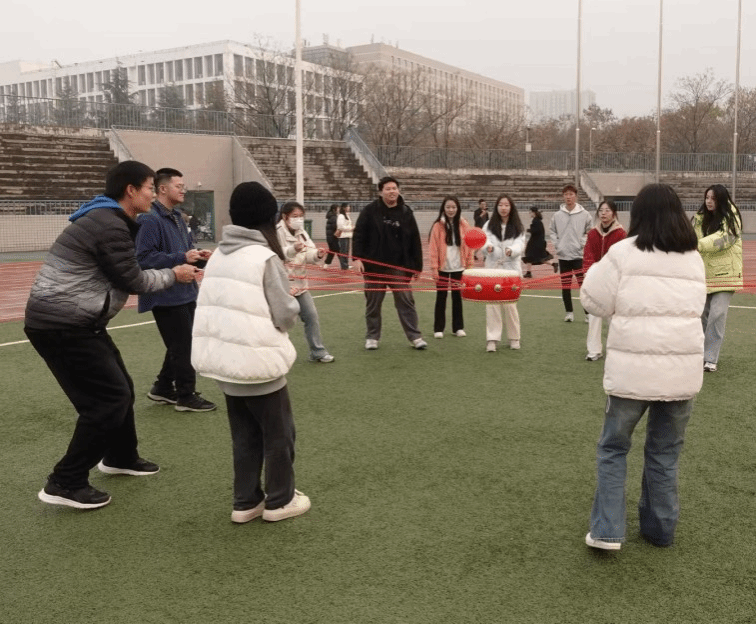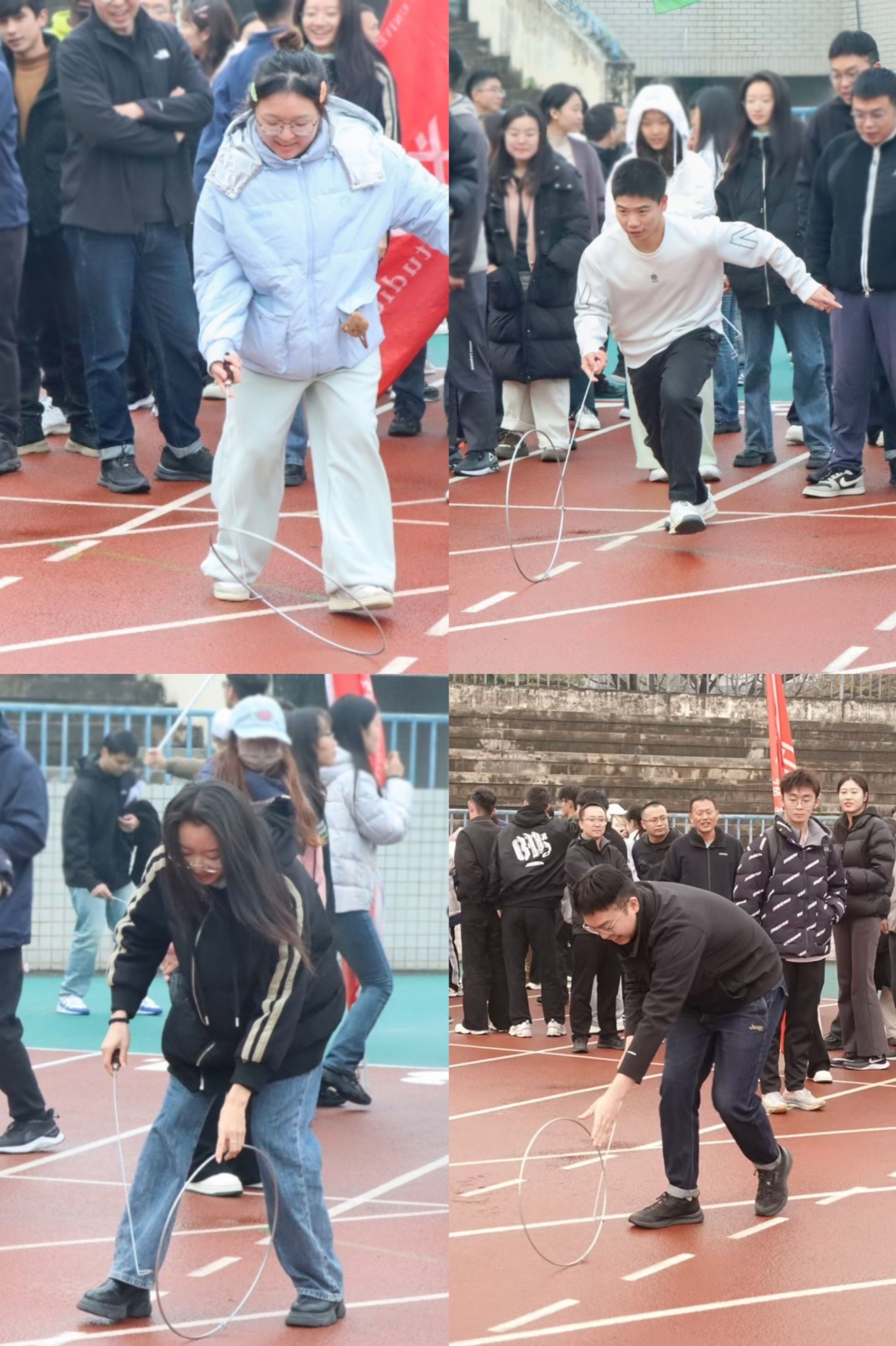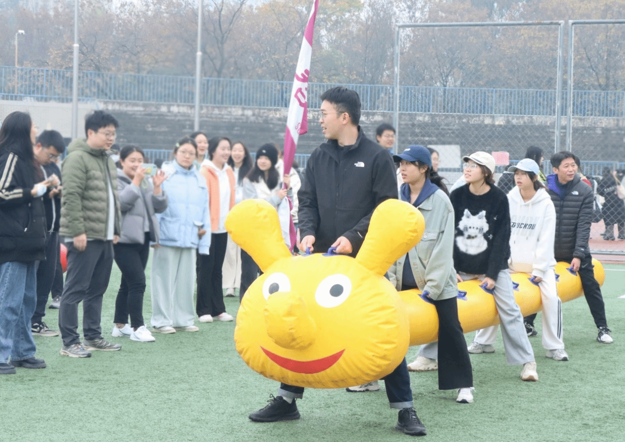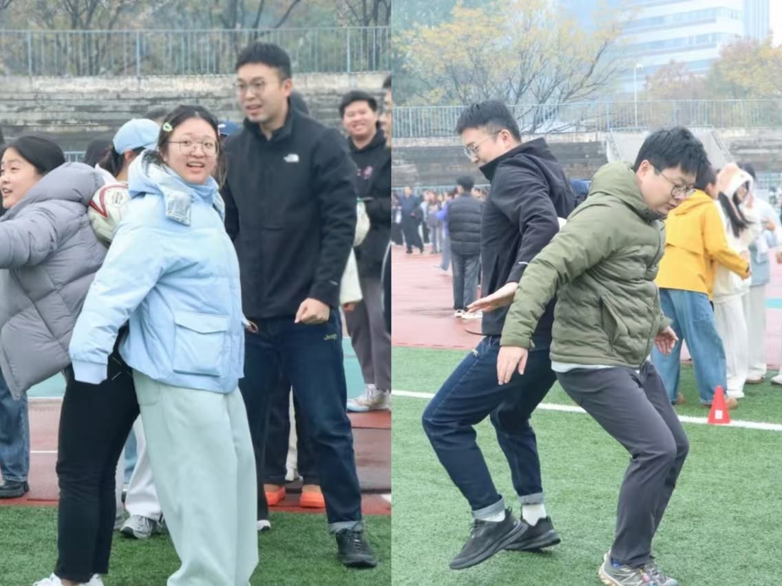 本次运动会共包含背对背夹球接力、毛毛虫竞速、推铁环接力、小绳单摇接力、击鼓颠球、合力筑塔六个项目。我院党委书记刘冬带领张哲、张凡、吴承恒、丁灵儿、王诗雨、姜泽宇等教师及20余名本科生、研究生参加了比赛。