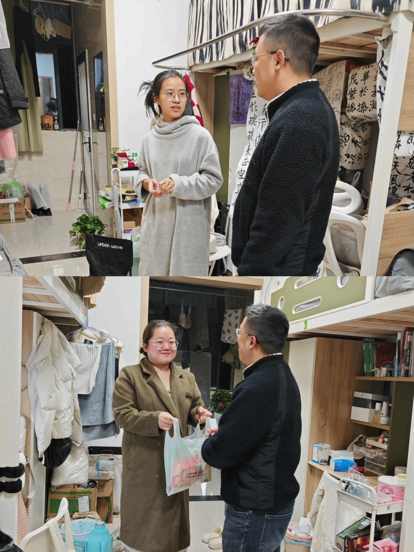 为进一步做好2025届本科毕业生升学就业指导帮扶工作,缓解学生备考压力,增强学生备考信心。12月6日,我院党委副书记李晔、本科生辅导员吴承恒深入学生宿舍开展考研慰问。