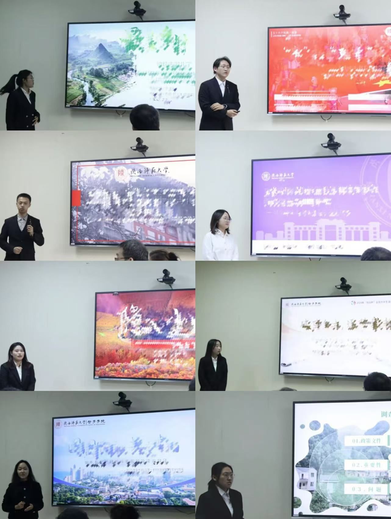 比赛中,各参赛团队通过5分钟项目展示及3分钟现场答辩分享了他们在经济、社会、文化多个领域的调研与创新思考成果。随后,评委老师们从创新性、实用性、代表性等多个维度对参赛项目进行综合评审,并提出进一步完善项目内容的修改建议。