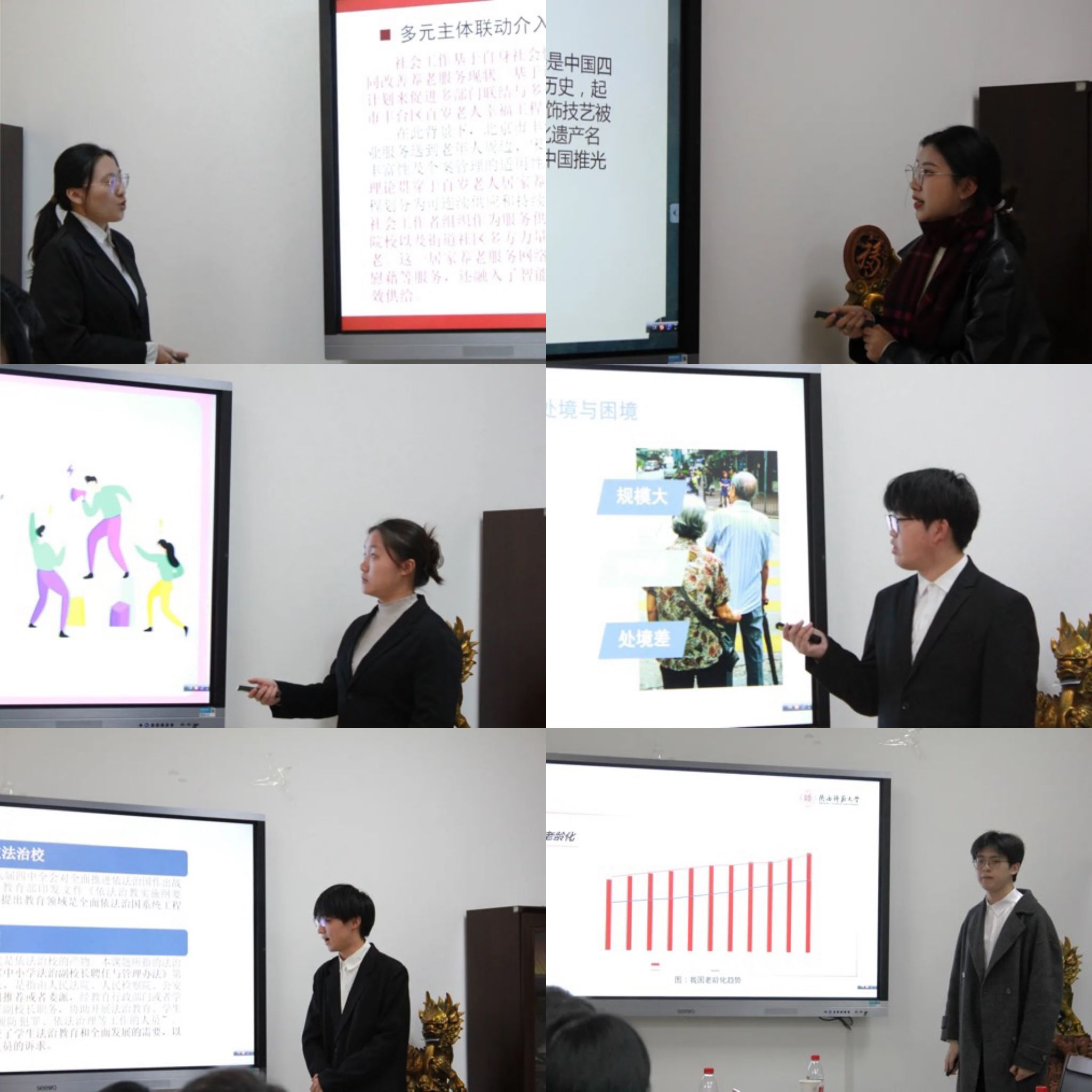 比赛邀请我校“挑战杯”竞赛资深指导教师、国际商学院教授韩菁,校团委科创中心指导教师方桂阳,我院党委书记刘冬、院长石碧球、副院长肖阳、社会学系副教授陈航英分组担任评委,我院党委副书记、纪委书记李晔、团委书记张哲主持分会场比赛。