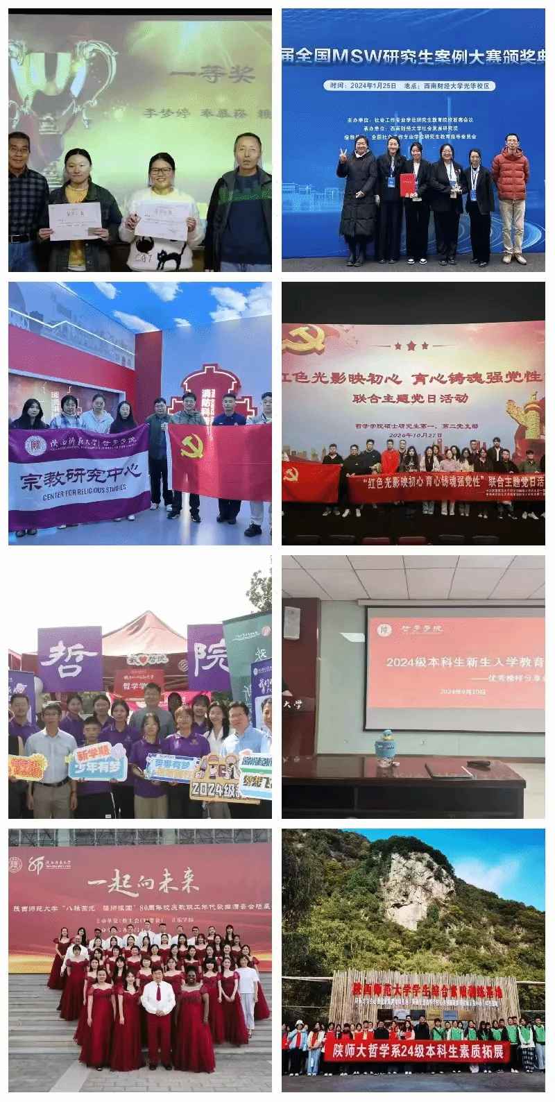 又踏层峰辟新天,更扬云帆立潮头。2024年,是我们上下齐心,在各类赛事中大展风采的一年。哲院人积极阳光、团结向上,取得了振奋人心的好成绩。一年来,同学们在第三届全国MSW研究生案例大赛、全国华语辩论邀请赛银卡赛、全国大学生英语竞赛、“求是杯”国际诗歌创作与翻译大赛等赛事和各类校赛和评奖中崭露头角,获得国家级奖项20项、省部级奖项5项、校级奖项198项。在学校铸牢中华民族共同体意识活动季、学风建设月、师德涵养月、诚信活动月、春季运动会、“导学杯”各类团体赛中获得集体奖10个,3个学生团支部获校级“五四红旗优秀团支部”,1个团支部获批校级样板团支部,2个学生宿舍获评学习标杆宿舍。学院2024届本科毕业生毕业去向落实率93.9%,升学率76.83%,均创学院历史新高,位居全校前列。