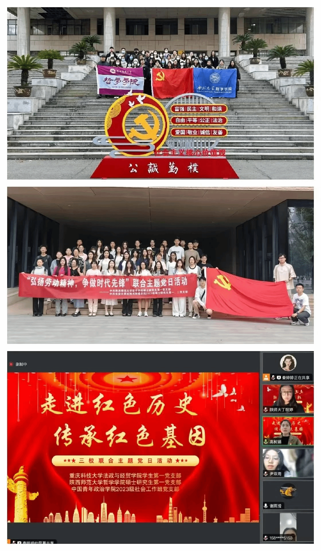 沧海横流显砥柱,万山磅礴看主峰。2024年,是我们聚焦铸魂育人,强化思想政治教育引领力的一年。在学校、学院党委的领导和支持下,全体学工干部贯彻落实立德树人根本任务,抓好“党团支部”“青马工程”两大主体,创新“理论宣讲+实践研学+竞赛赋能”教育方式,带领全体学生多渠道、多途径、多手段开展理论学习,让思想政治教育“活起来”,推动党的政策、理论、主张入思想、化力量、成行动。全年共开展学生主题党日、团日活动200余次,参与学生党员、团员逾4000人次。充分运用“哲里政好”平台,推送习近平新时代中国特色社会主义思想和党的创新理论等30余条,总阅读量3000余次。研究生学生党支部与河海大学、长安大学、重庆科技大学等高校学生党支部开展联学共建、红色地标打卡等活动,赴终南山下进行红色营地素质拓展,开辟了学生党建活动新场域。
