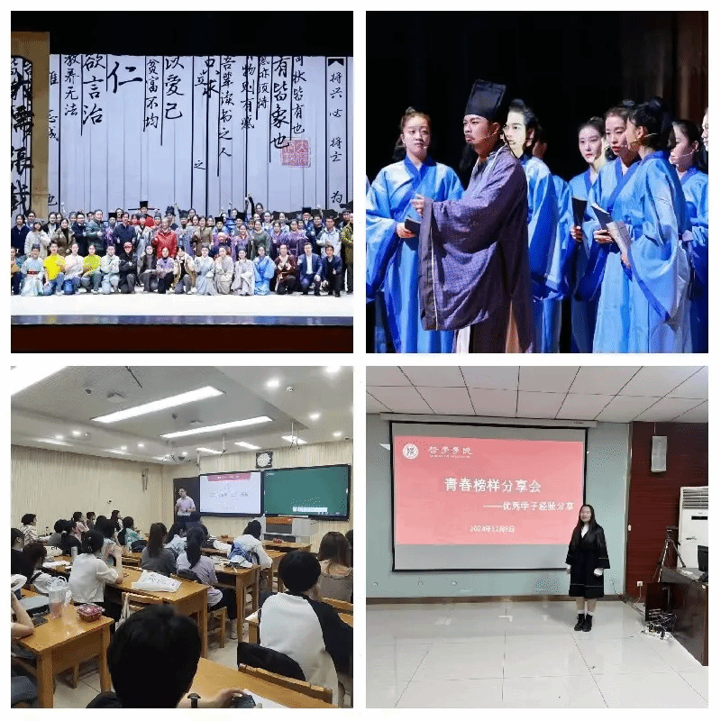 时序更替岁月新,同心筑梦赴新程。2024年,是我们蓄力薄发,坚持守正创新的一年。我院组织21支队伍参加2024年大学生新文科实践创新大赛,获金奖2项,银奖2项,铜奖7项,《原创哲学戏剧〈大儒张载〉——中华优秀传统文化传承传播的实践者》获全国铜奖。组织28个项目参加“挑战杯”大学生课外学术科技作品竞赛,相较去年同比增长360%,首次举行“挑战杯”大学生课外学术科技作品竞赛院级决赛,推荐11个作品参加校赛。组织16支队伍参加“三下乡”“田野中国”等社会实践活动,其中“黄河文化与中华文明的探源与开新·三晋篇”社会实践队获评“省级优秀团队”,5名师生获评暑期实践先进个人、优秀指导教师。学院悉心指导、大力支持学生干部全面开展工作,学生干部的荣誉感、归属感、自豪感和工作能力得到大幅提升。128名学生干部中有7人荣获国家奖学金、国家励志奖学金,62人次获校级“优秀学生干部”“优秀团干部”等荣誉称号,55人次在学校各类竞赛中获奖。