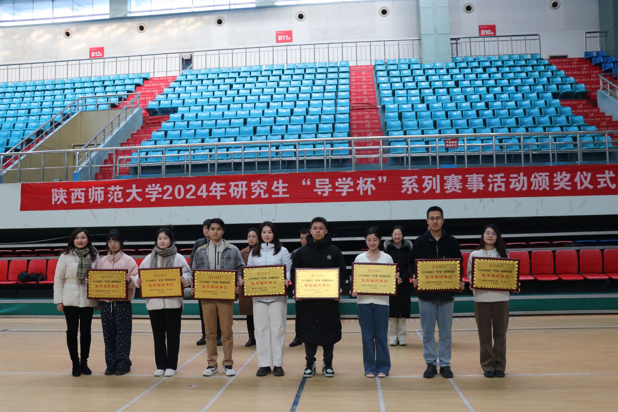 1月8日下午,我校2024年研究生“导学杯”系列赛事活动颁奖仪式在长安校区上林体育馆举行。颁奖仪式精彩纷呈,还开展了健步走打卡、党史知识竞答、健身操展示、彩带龙等户外拓展活动,我院师生全程参与了各项活动,凭借出色的宣传组织和优异的表现荣获“优秀组织奖”。