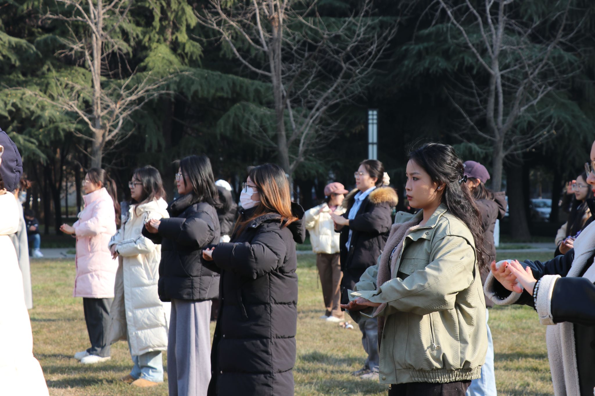 活动于下午14:30准时开始,我院健步走打卡团队齐聚上林体育馆户外场地,准备迎接一系列富有挑战与趣味的拓展活动。活动伊始,大家跟随指导者学习八段锦的健身方式,在午后的阳光中,以轻松愉快的节奏进行身体锻炼,舒缓了一天的疲惫。