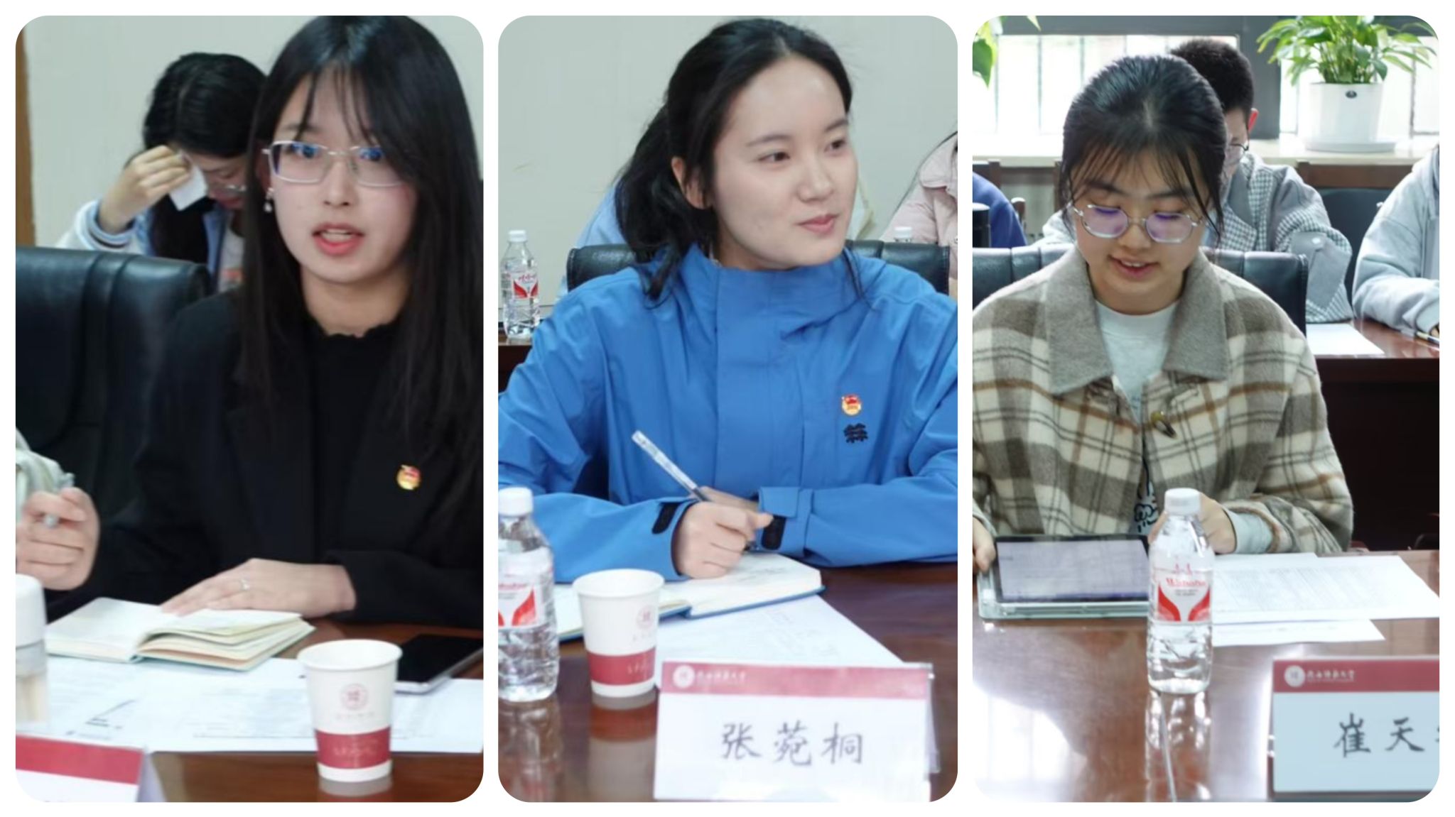 会议伊始,张哲、张思豆分别介绍了本学院共青团工作的基本情况,分享了学院特色工作经验。随后,与会师生围绕学生组织建设、主题活动合作等话题展开交流。