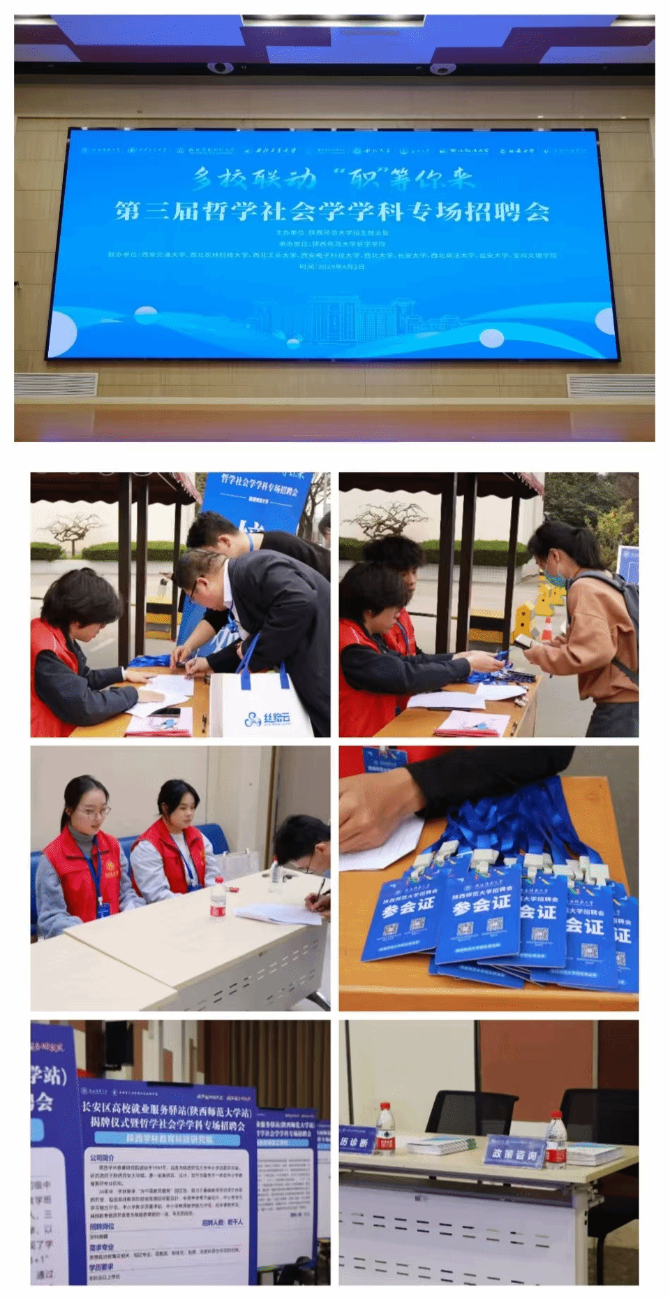 为进一步提升哲学、社会学学科毕业生就业指导工作的精准性和有效性,搭建相关学科人才与用人单位精准对接平台,促进哲学、社会学专业毕业生更高质量充分就业,由公海贵宾会官网jcjc5500招生就业处主办,我院承办,西安交通大学、西北工业大学、西北农林科技大学、西安电子科技大学、西北大学、长安大学、西北政法大学、延安大学、宝鸡文理学院等高校共同参与的“陕西省第三届高校哲学社会学学科专场招聘会”于4月2日在公海贵宾会官网jcjc5500长安校区新勇活动中心成功举办。