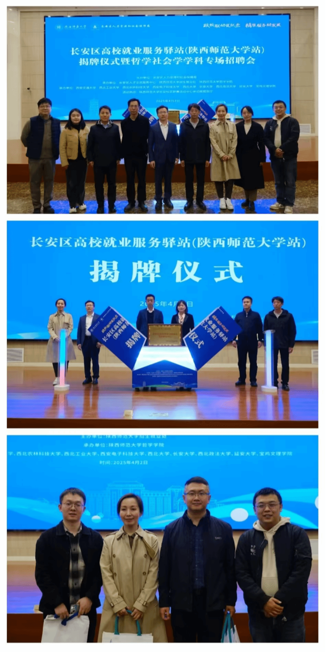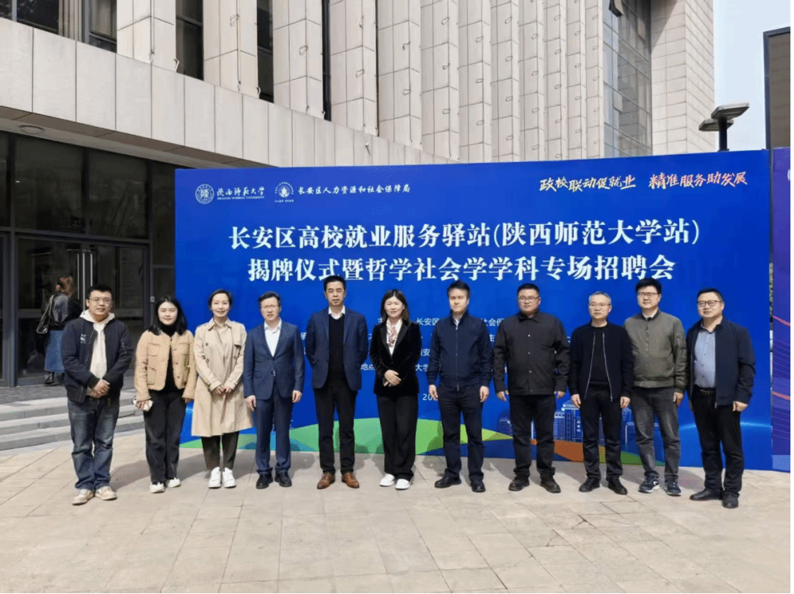 长安区人力资源和社会保障局副局长张卫萍一行、长安大学马克思主义学院党委副书记冯迪、西北工业大学公共政策与管理学院仵荣鑫副教授、我校招生就业处处长雒朝梁以及我院班子全体成员、全体学工干部到场参会,现场还举行了长安区高校就业服务驿站(公海贵宾会官网jcjc5500站)揭牌仪式,并就访企拓岗、人才需求、毕业生推荐等事宜与用人单位进行了充分沟通,为进一步深化校企合作、毕业生求职就业、实习基地建设等工作奠定基础。