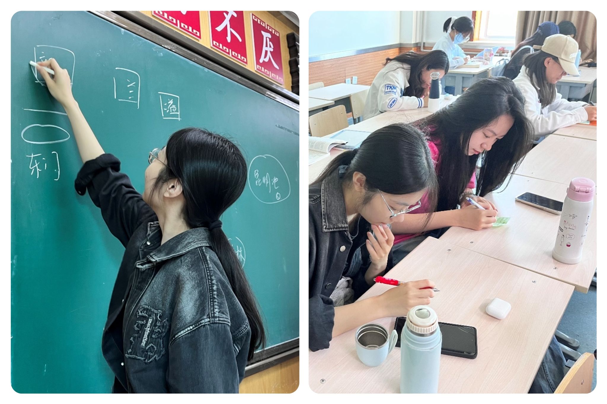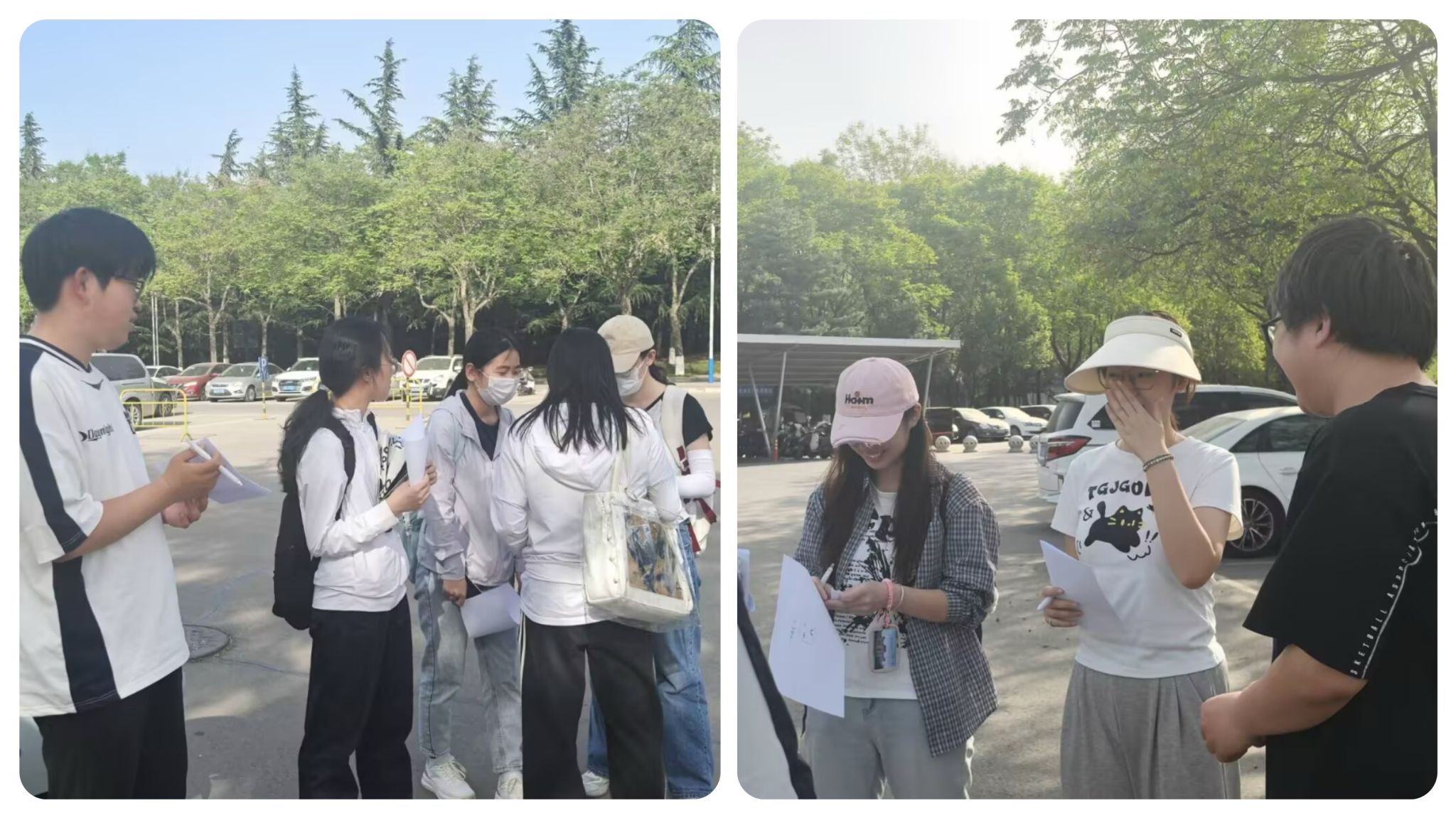在两轮“你画我猜”中,有的同学是“典故大师”,发挥聪明才智,演绎历史故事;有的同学是“绘画小能手”,妙笔生花,在纸上画出一番天地;有的同学是“创新思维家”,拆成单字、找同音词来表达,可谓各显神通,有趣又解压。在“模仿动作”游戏中,同学们仿佛穿越到终南山、翠华山景区,三五成群,摆起pose,或蹲或站,载笑载言,春日的操场上充满了欢声笑语。