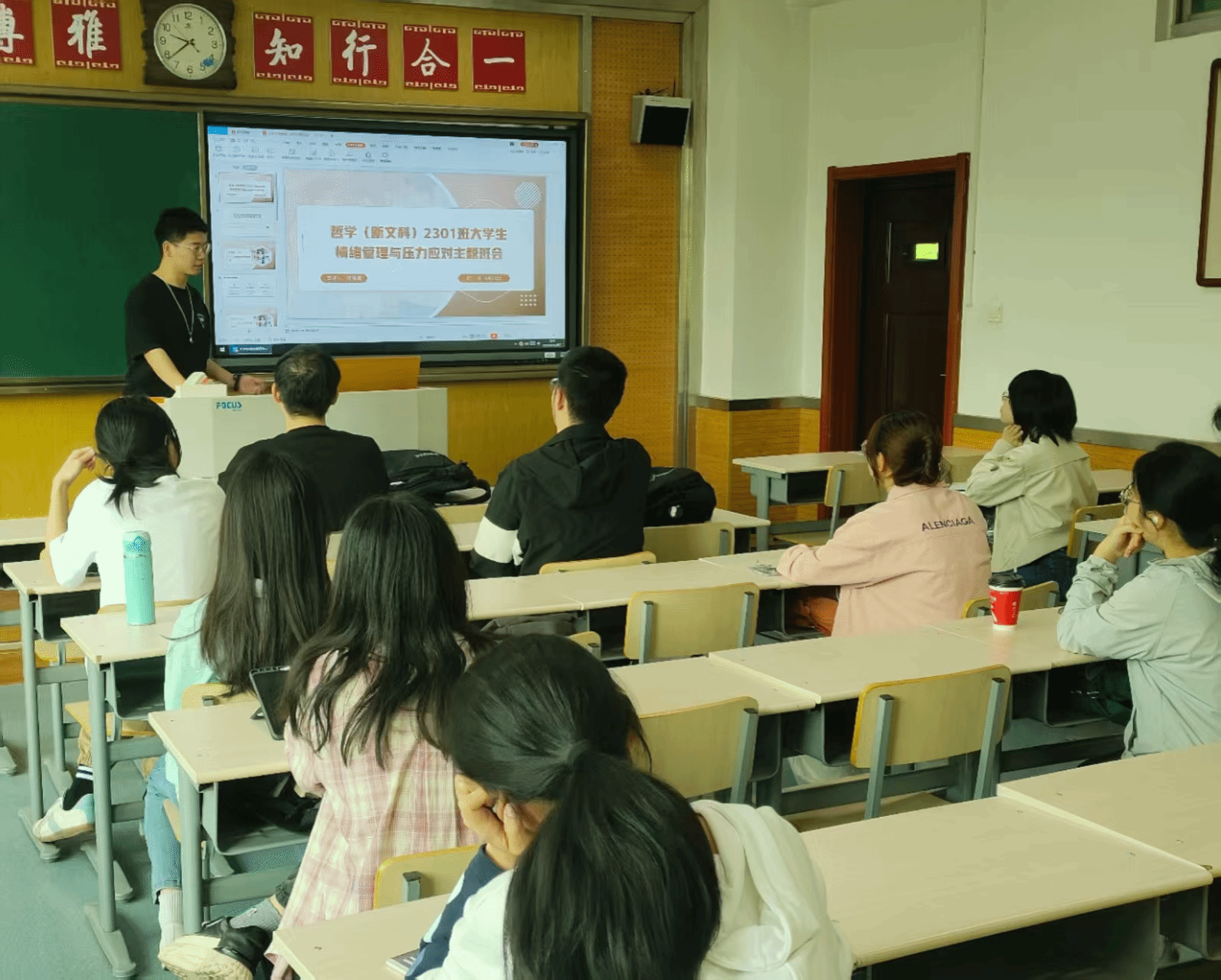 4月16日上午,本科生哲学(新文科)2301班在文渊楼3201教室开展主题为“情绪管理与压力应对——心灵之窗”主题班会。班级全体同学参加本次班会,本次班会由班长陈晓鑫主持。