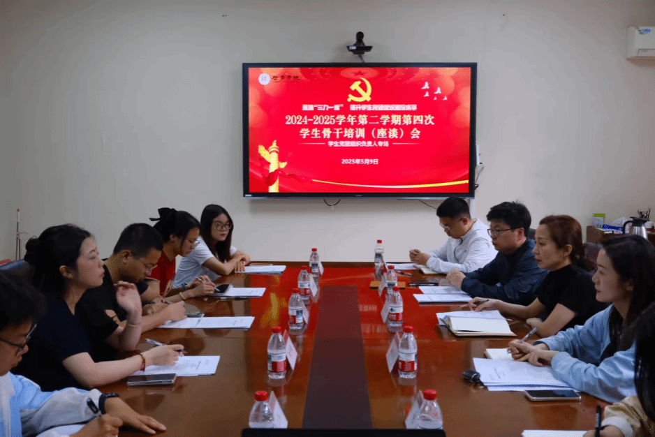 5月9日下午,我院在一层会议室召开2024-2025学年第四次学生骨干培训(座谈)会。会议以“聚焦‘三力一度’,提升学生党团组织建设水平”为主题,邀请党委学工部(学生处)教育管理科科长齐博洋老师莅临指导,我院党委副书记李晔、团委书记张哲、研究生专职辅导员张凡、本科生专职辅导员吴承恒及学院17名学生党团支部书记、学生组织(社团)负责人参加了会议。会议由李晔主持。