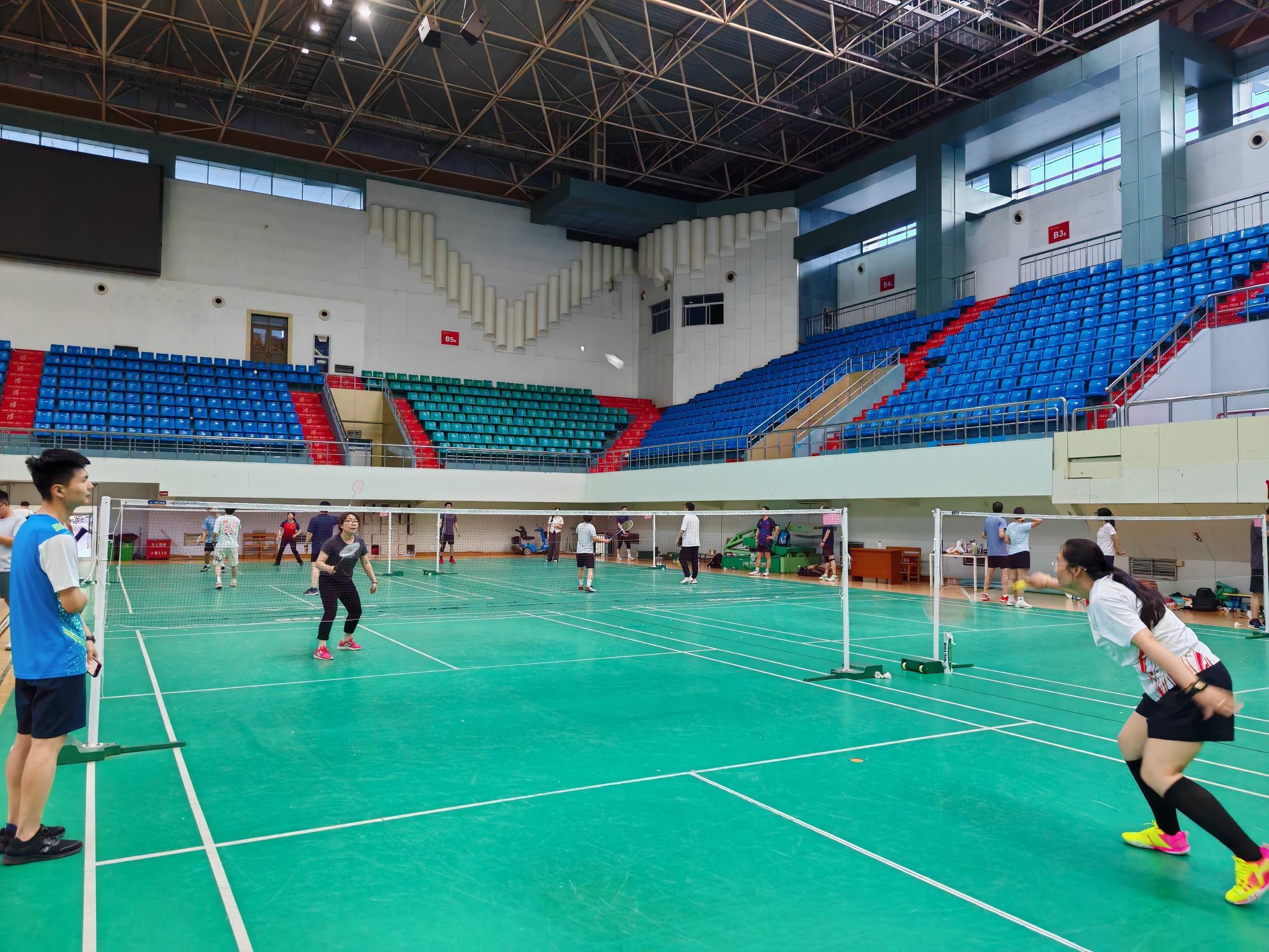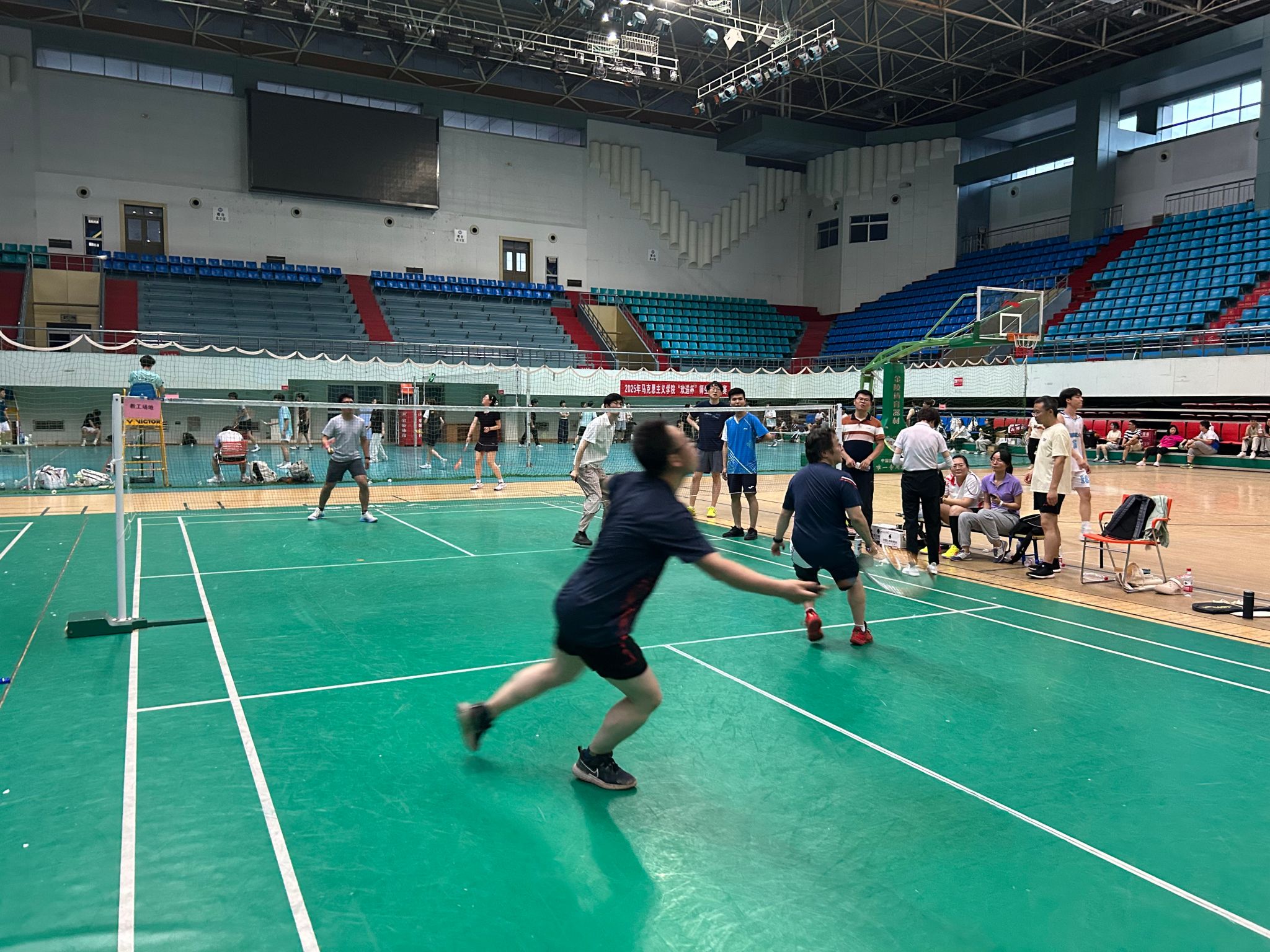 为积极备战学校2025年教职工羽毛球赛,学院于6月4日晚在长安校区上林体育馆举行了院内羽毛球选拔赛。