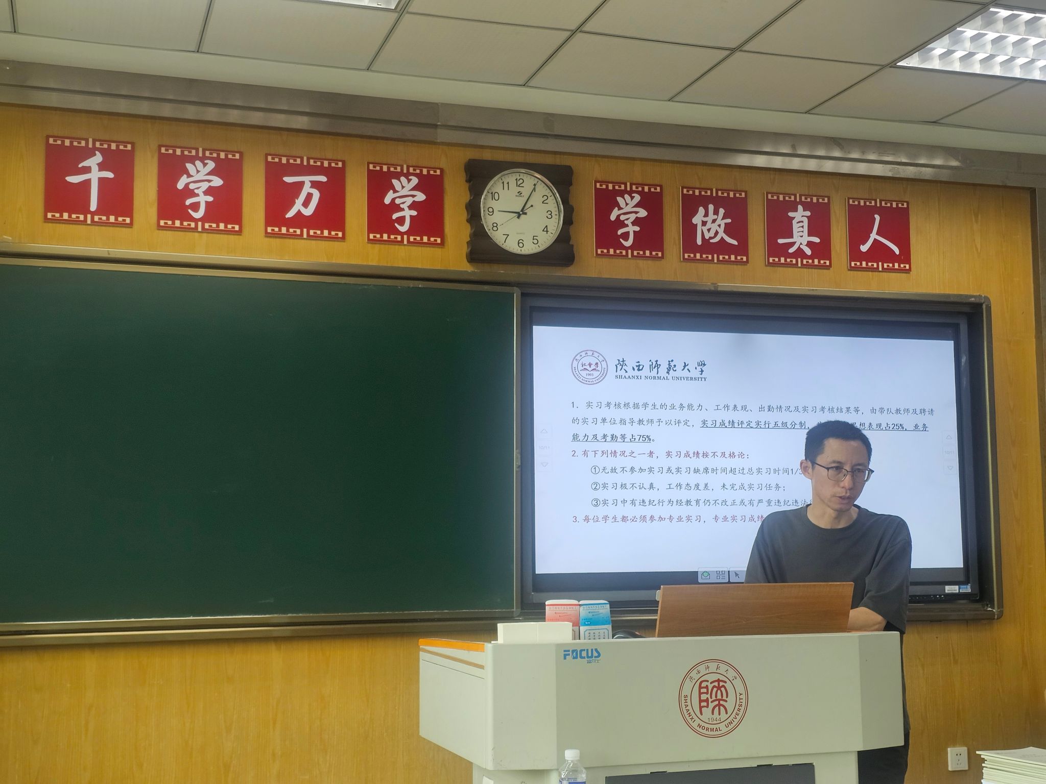 指导教师万怡对集体实习的必要性、初步安排、注意事项以及评分考核等内容进行详细说明,对同学们做好行前有关准备工作圆满完成实习进行了温馨提示。