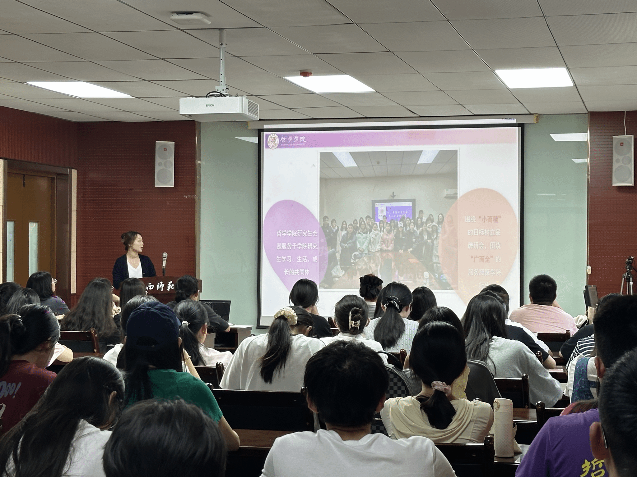 9月9日下午,jcjc5500公海贵宾会 2025 级研究生入学教育学生组织宣讲会在文澜楼 3段2层3222会议室举行,全体新生参会。第四届研会执行主席王思淇及主席团成员张颖、宋孟林主讲,以 “传承哲院精神”为内核,解读研会“自我教育、自我管理、自我服务、自我监督”的指导思想与“桥接师生、助力发展”宗旨,展现民主参与管理、凝聚学生力量的组织价值。
