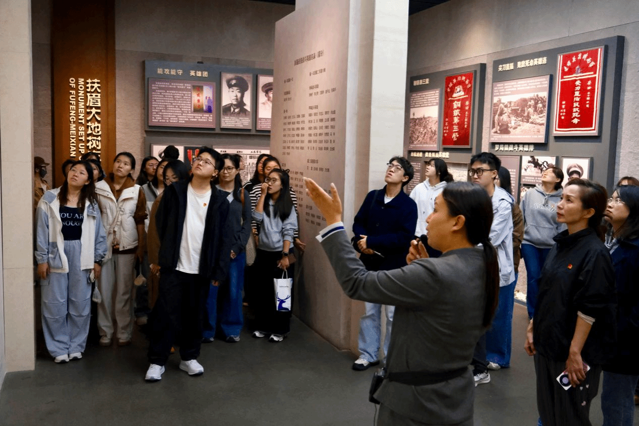 悼念仪式结束后,师生们在纪念馆讲解员的引导下,有序参观扶眉战役纪念馆展厅。展厅内,一张张泛黄的历史照片、一件件承载着岁月痕迹的革命文物、一个个生动还原战役场景的雕塑与模型,全景式展现了扶眉战役的历史背景、战斗过程及重大意义。讲解员结合丰富的史料,详细讲述了革命先烈们在艰苦卓绝的战斗中、不怕牺牲、奋勇向前的英雄事迹,讲述了先烈们为实现理想信念不惜抛头颅、洒热血的崇高精神。老师和同学们不时驻足凝视,认真聆听讲解,轻声交流感悟,深刻体会到革命胜利的来之不易,进一步加深了对党的初心和使命的理解。
