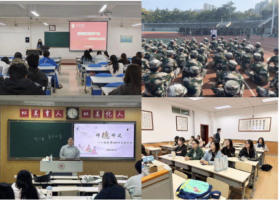 学院以新生入学教育为契机,通过开展本科生“师生面对面”、学生骨干座谈会、优秀学子分享会等活动,将师德涵养融入新生适应引导全过程。在“师生面对面”中,辅导员老师结合教学经历分享育人初心与职业坚守,用真实案例传递教育工作者的责任与温度;在学生骨干座谈会上,围绕“如何以师为范服务同学”展开讨论,引导学生骨干以师德标准要求自身言行;在优秀学子分享会里,学长学姐以受教者视角讲述良师榜样的影响,间接展现师德风范对学生成长的浸润作用,以新生易接受、能共鸣的方式,提高新生的师德素养。