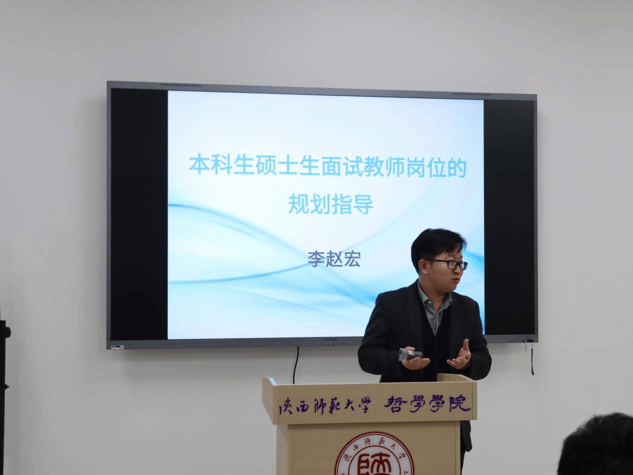 模拟试讲和点评环节结束后,李赵宏还应邀做了题为《本科生研究生面试教师岗位的规划指导》的专题分享。李赵宏从认知、意识和方法三个层面强调高效沟通的重要性,建议同学们明确教学目标、打通教学逻辑、把控教学时间、营造教学氛围。最后鼓励同学们要借助学校所提供的平台,多加练习,形成个人教学特色。