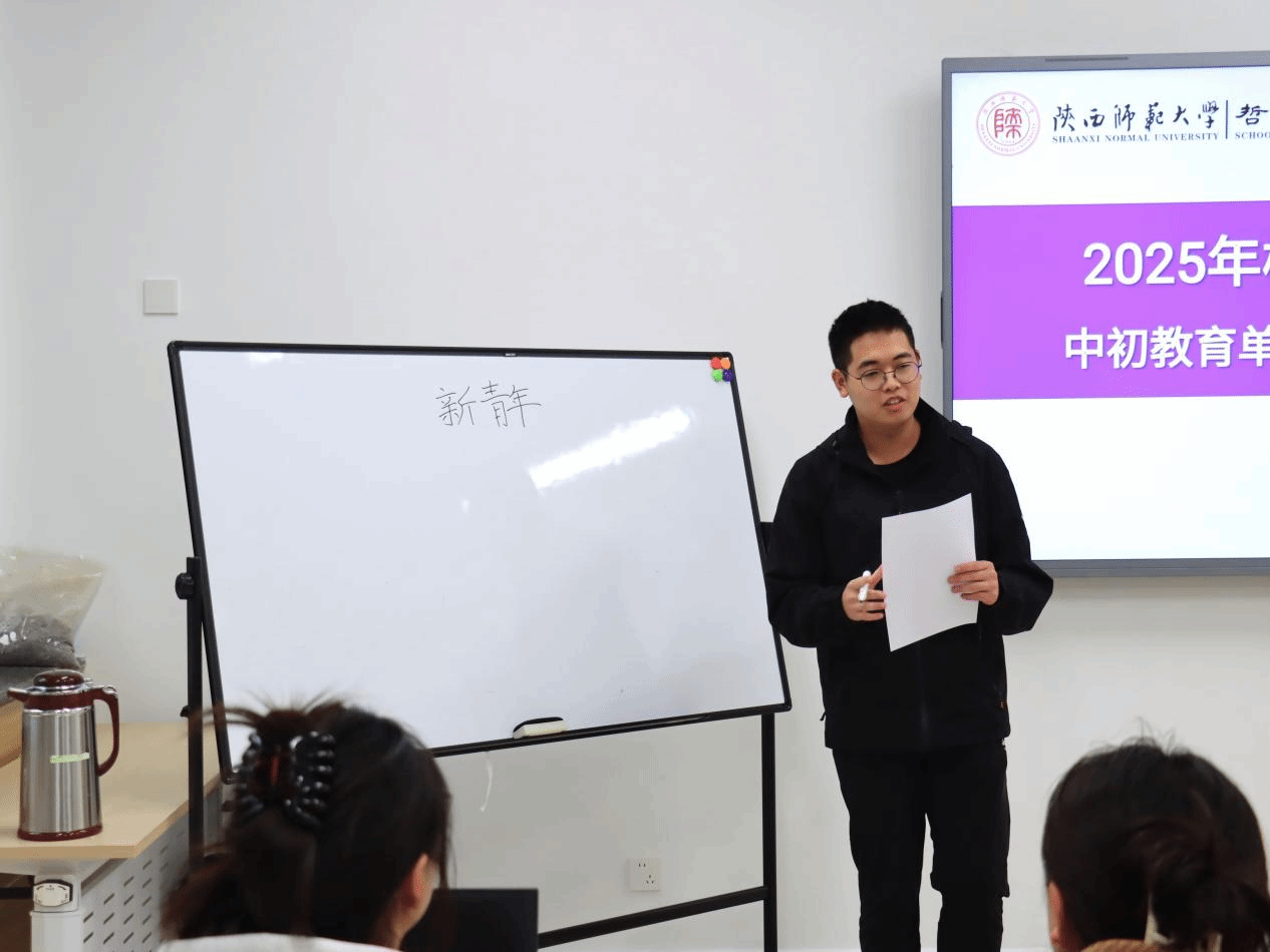 本次活动的核心环节是模拟课堂试讲。各年级同学依次登台,在五分钟内进行了丰富的课堂展示,涵盖了初高中政治、数学、语文等学科。同学们灵活运用案例教学、互动提问等方法,展现出扎实的学术素养与良好的教学潜质。