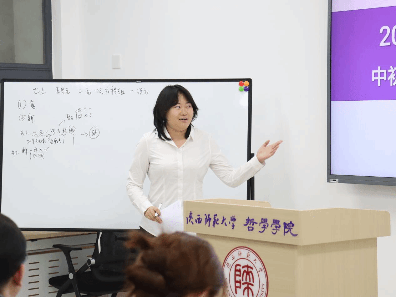 结合同学们的现场表现,李赵宏从一线教学的实践经验出发,提出四点关键建议:一是控制语速,减少口头禅,让表达更沉稳从容;二是注重课堂结构的完整性,形成有头有尾的闭环设计;三是将内容讲解细化,结合实际案例将知识点讲透讲活;四是简化板书设计,保持清晰整洁,有效引导学生思路。