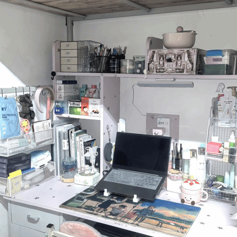 菊园宿舍将生活的精致感展现得淋漓尽致。干净的书柜、贴满回忆的照片墙与琳琅满目的手办娃娃相映成趣,尤其是时髦的“LABUBU”,更为空间注入了灵动朝气,于细节处流露出同学们敬惜书册的敬畏心、不失浪漫的童真心。