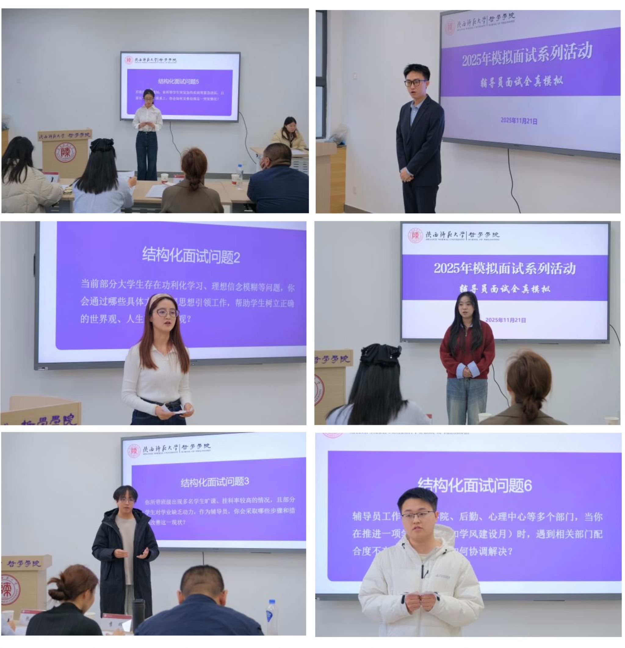 为进一步提升学院学子在高校辅导员岗位领域的求职竞争力,助力学生清晰锚定职业发展方向、夯实面试应答的实战能力,11 月 21 日上午,我院于文澜楼一层 3127 会议室成功举办职业生涯规划与求职实战指导系列活动之高校辅导员模拟面试专场。本次活动特别邀请公海贵宾会官网jcjc5500历史与文化学院党委副书记李晨子、西安邮电大学数字艺术学院辅导员张良娜担任专业点评嘉宾,学院党委副书记李晔、研究生专职辅导员张凡、本科生专职辅导员吴承恒,以及兼职李泽宇、郭宏彦、学院各年级试讲学子参与了活动,活动由2025级外国哲学专业硕士研究生徐晓燕主持。