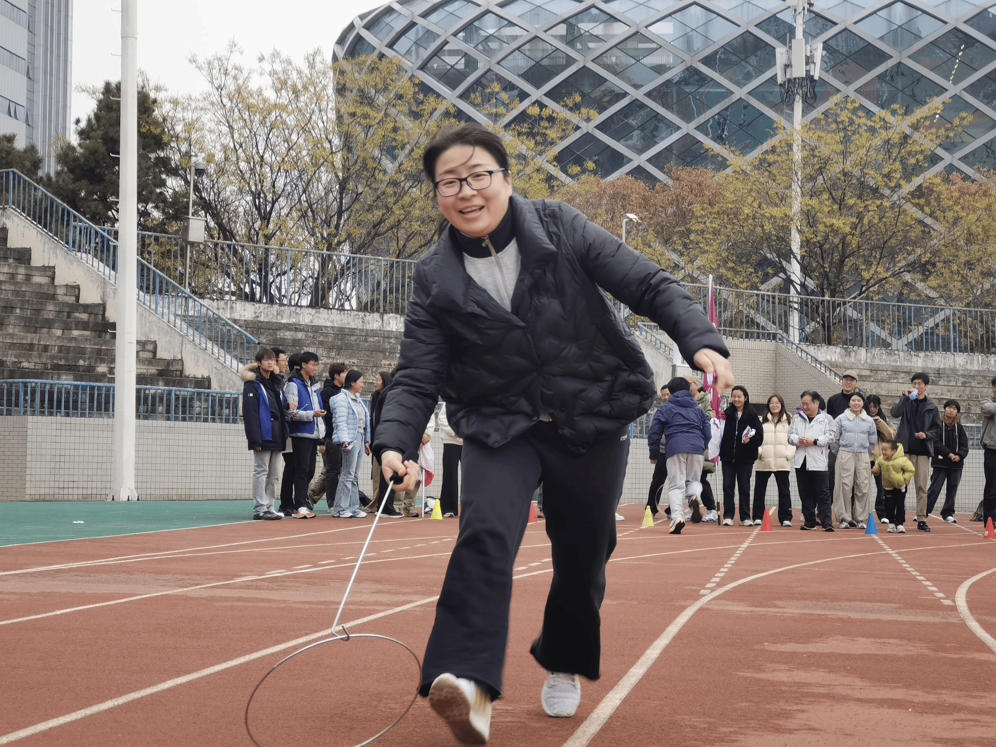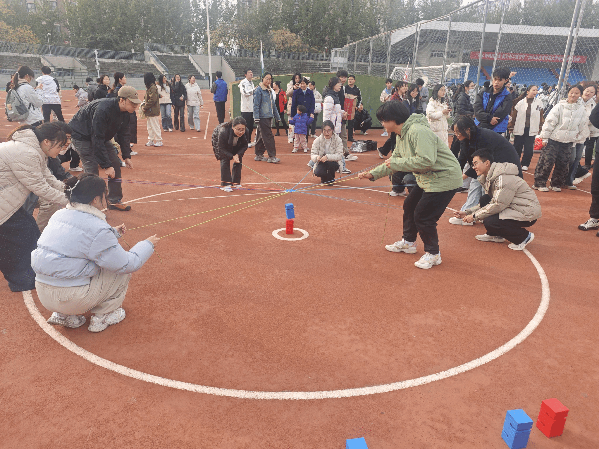 本次运动会共包含背对背夹球接力、毛毛虫竞速、推铁环接力、小绳单摇接力、击鼓颠球、合力筑塔六个项目。各个项目竞争都十分激烈,比赛过程中大家笑意盈盈,其乐融融。