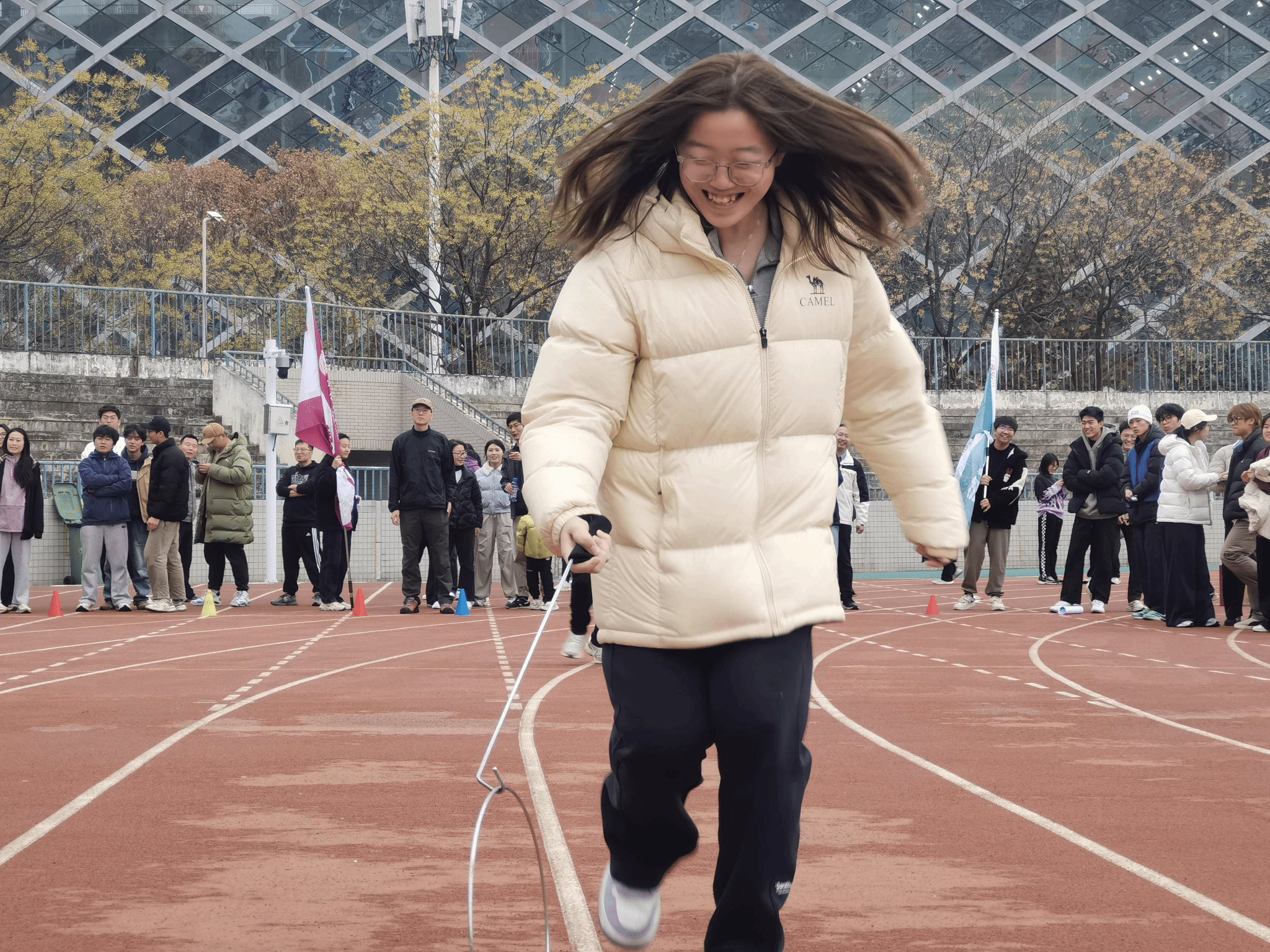 哨声一响,首棒选手立即起跳,脚下小绳“嗖嗖”生风,化作一团模糊的光影。交接瞬间扣人心弦,新手快速做出反应,随即稳住节奏奋力追赶。操场上绳影翻飞,此起彼伏的助威呐喊交织汇成一首激昂的青春乐章。